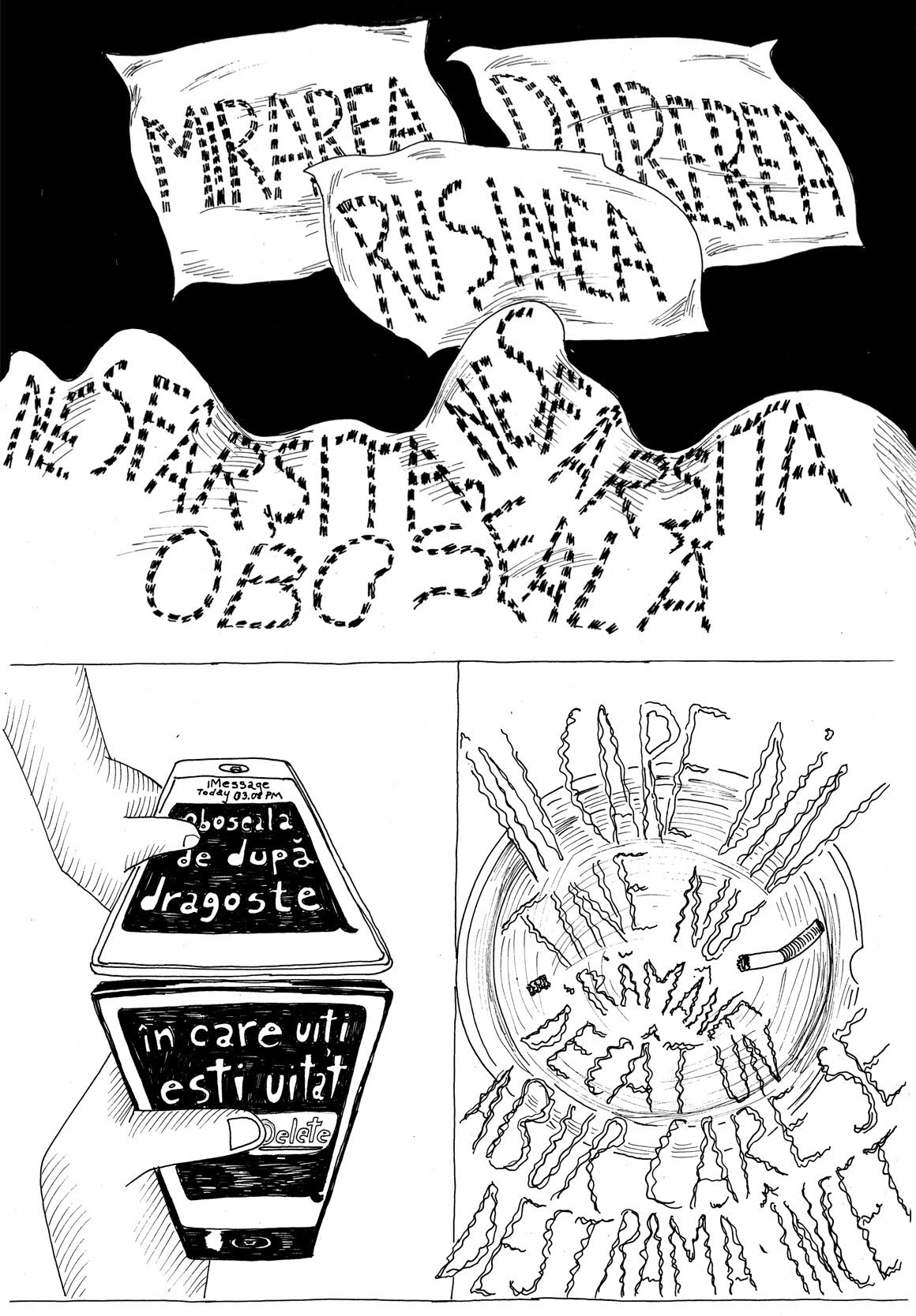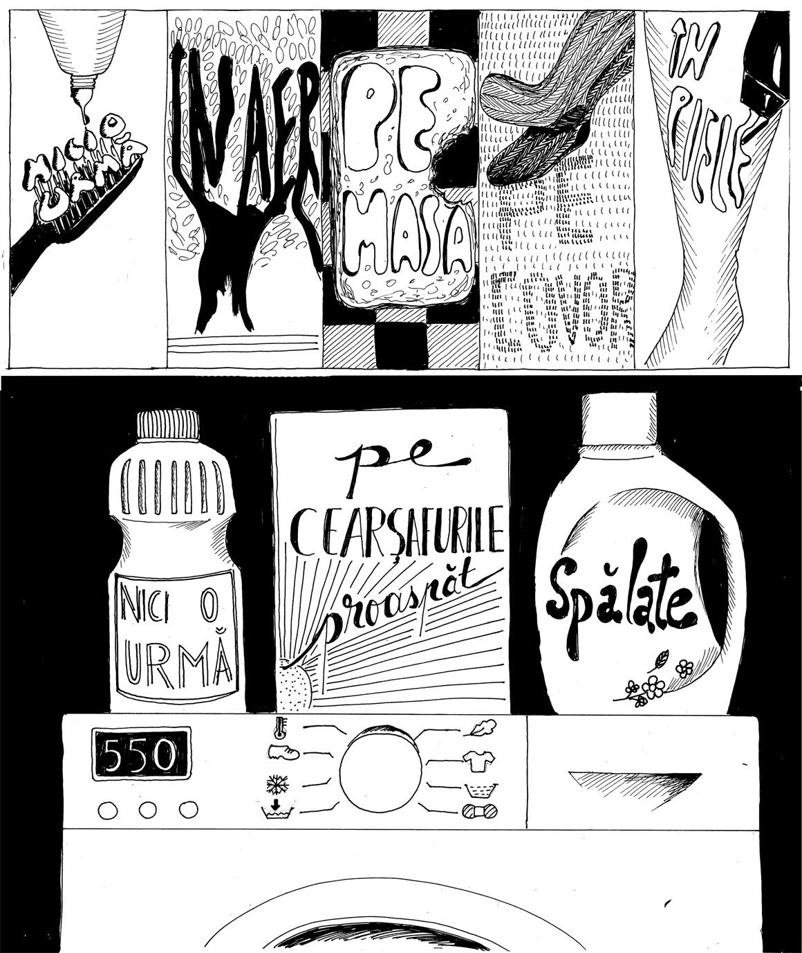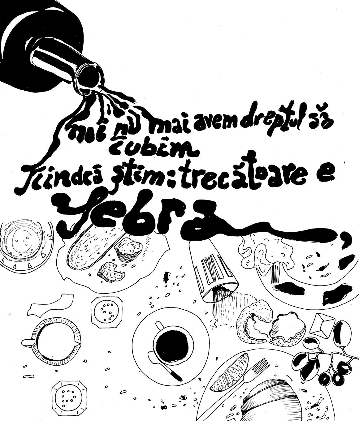 Am vrut să vedem ce se întâmplă când lași poezia pe mâna unui desenator de benzi desenate, așa că, împreună cu Andreea Chirică, deschidem azi pe Scena9 un raft cu poeme ilustrate. La urma urmei, să citești înseamnă să faci un schimb, iar pentru fiecare cititor, schimbul ăsta arată altfel. Vom face salturi prin istoria literaturii, de unde Andreea va alege versurile care-o fac să pună creionul pe hârtie și să transforme cuvintele-n imagini. Începem cu Noi nu, un poem de Alexandru Mușina, din volumul Regele dimineții.