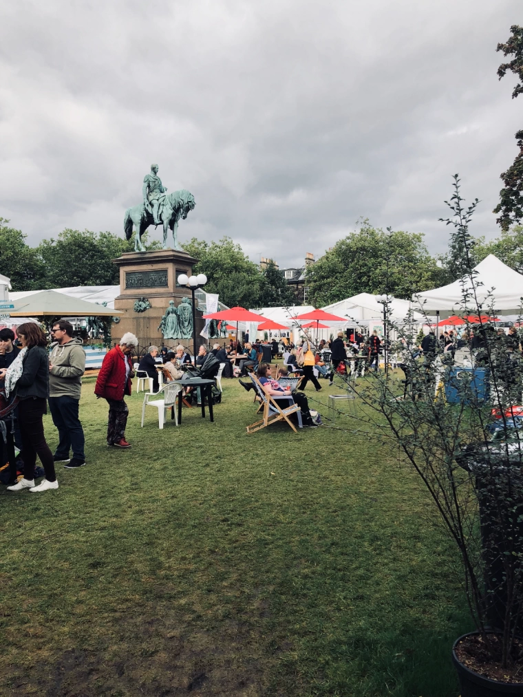 Because 1. The Edinburgh Fringe (the biggest art festival in the world) takes place at the same time and happens at over 500 locations around the capital - so there are really not many places available, if any - and 2. Edinburgh can get so rainy and awful (and WINDY) sometimes, the festival had to take place indoors, have walls and “roofs” everywhere, even though it was August. So not having much choice, they took a public square, called Charlotte Square and they turned it into a little village, with tents that had names and ice cream carts and gin carts (a popular favorite, THANK YOU Edinburgh Gin) and three bookshops and several book signing points and tent destined only for children activities, several coffee carts, and very cozy yurts for authors and the press - conveniently located in the same place so people like us can casually drink coffee around the area pretending that they’re not waiting for Karl Ove Knausgaard to come take his author pic and maybe, just maybe lightly brush against his jacket as he walks by.