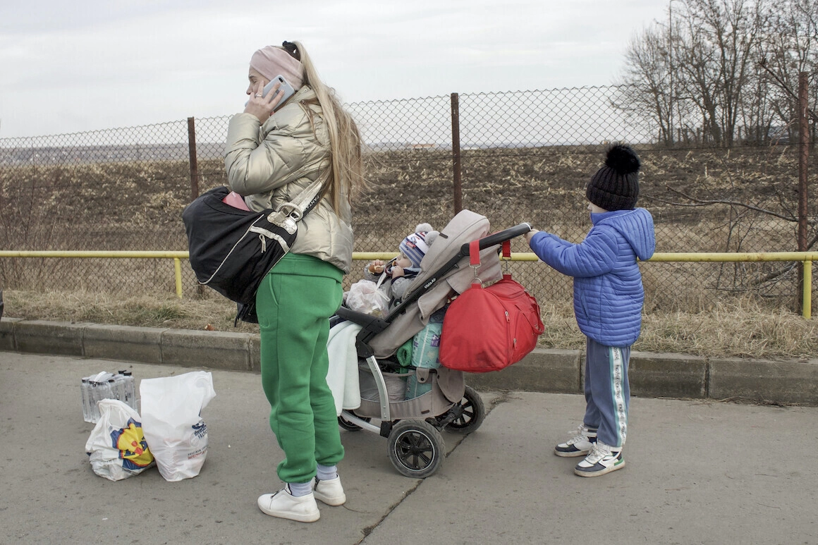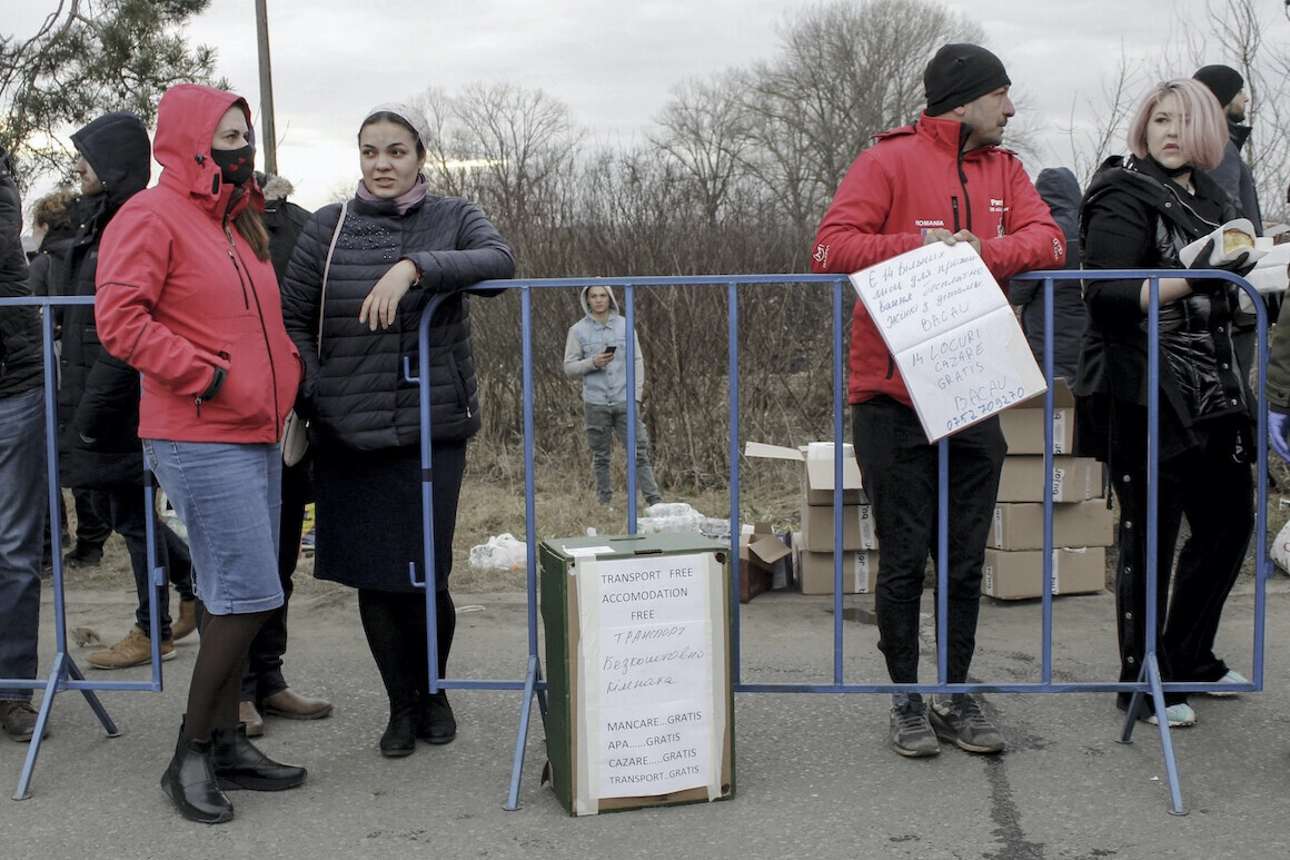 There’s this image that’s kept repeating over the past few hours here, at the Siret customs checkpoint in northern Romania: Ukrainian families, most of them mothers and their children, are crossing the border, on foot or by car. They’re winding up surrounded by groups of volunteers who offer them sandwiches, water, food packages, diapers, prepaid SIM cards, and so on. At times like these, a lot of these people on the run from the war burst into tears.
