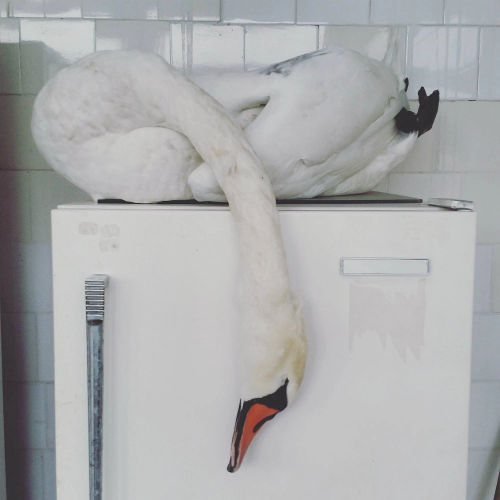 Instalație Pepo Salazar / Belong anywhere. Meat floating job position