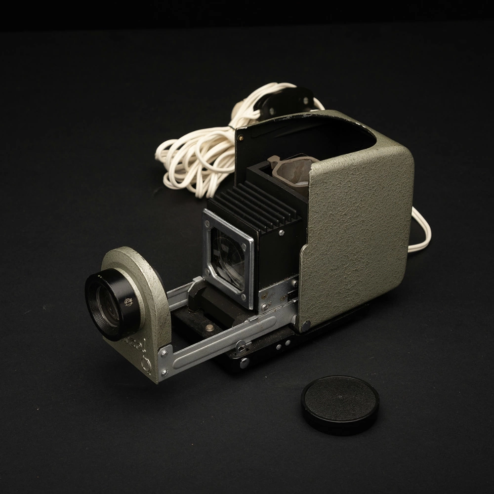 Eram la grădiniță, în ‘89 sau în ‘90, când am văzut prima dată un aparat de genul ăsta (produs de I.O.R., Întreprinderea Optică Română, singura societate de la noi care făcea aparatură opto-mecanică). Mai mult decât poveștile pe care le vedeam proiectate pe perete, mă fascina tot ritualul de dinainte: trasul draperiilor, camera care se întuneca brusc, mâinile educatoarei care manevrau aparatul și liniștea care se lăsa printre noi. Fac parte din generația aia care a prins ultimele zile ale Diascolului și poate tocmai de asta îl asociez cu un moment de tranziție dinspre o lume spre alta. În clipa în care „ne-am tras cablu” și maică-mea mi-a cumpărat un calculator SINTEZ, „diafilmul” a devenit piesă de muzeu. (Ionuț S.)