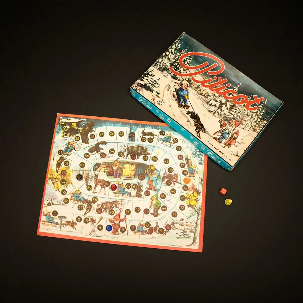 Fascinat de poveștile spuse de bunicul său, Petrică vrea să ajungă în țara lui Piticot, așa că îl înhamă la sanie pe iepurele Urechilă și pornește în aventură. Sunt 65 de pași pe care-i parcurgi printr-o aruncare a zarului, iar unele puncte de pe traseu te împing spre destinație sau te trag înapoi, spre linia de start. Jocul ăsta, produs de Întreprinderea Poligrafică Banat din 1961 încoace, m-a bucurat și m-a enervat și m-a făcut să-mi frec palmele de nerăbdare mai mult decât toate variantele de Monopoly pe care le-am încercat după aceea. (Vlad)