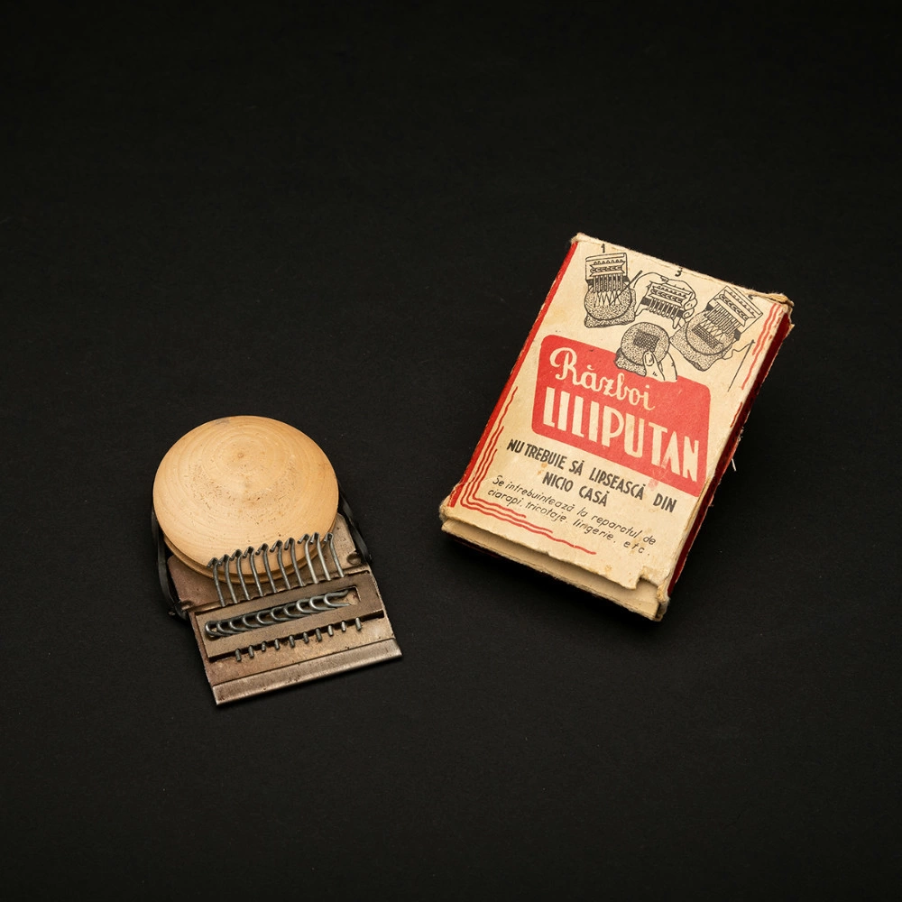 Cred că mi-am petrecut cel puțin un an pus cap la cap cuibărită sub mașina de cusut a bunicii mele de la Bârlad, în ultimii ani ai comunismului. Era mare și solidă, ca o cloșcă de metal sub ale cărei aripi mă simțeam în siguranță. De asta mi-a tresărit inima când am văzut în expoziție războiul de țesut liliputan, un obiect miiiiic, „compus dintr-un sistem metalic, o ciupercă de lemn și un inel de cauciuc”, folosit frecvent pentru reparat ciorapii, tricotajele sau alte țesături. Remaieuza folosea des războiul ăsta minuscul de țesut, în niște vremuri în care fiecare firicel de ciorap era prețuit ca o comoară a feminității înfiorător de greu de înlocuit. Citeam într-un studiu excelent al lui Ian Buruma prin ce treceau femeile în timpul celui de-al doilea război mondial ca să facă rost de o pereche de ciorapi. N-o să zic exact prin ce, dar cred că vă puteți imagina. Acum, ciorapii sunt peste tot și războiul liliputan, fratele mai mic al mașinii de cusut, a dispărut. Însă ceva din stăruința lui pare c-a rămas încă acolo, scrisă pe spatele cutiuței: „cruțăm vederea întrucât nu trebuie să căutăm firele ca la țesutul obișnuit. Prețul aparatului Lei 400.” (Luiza)