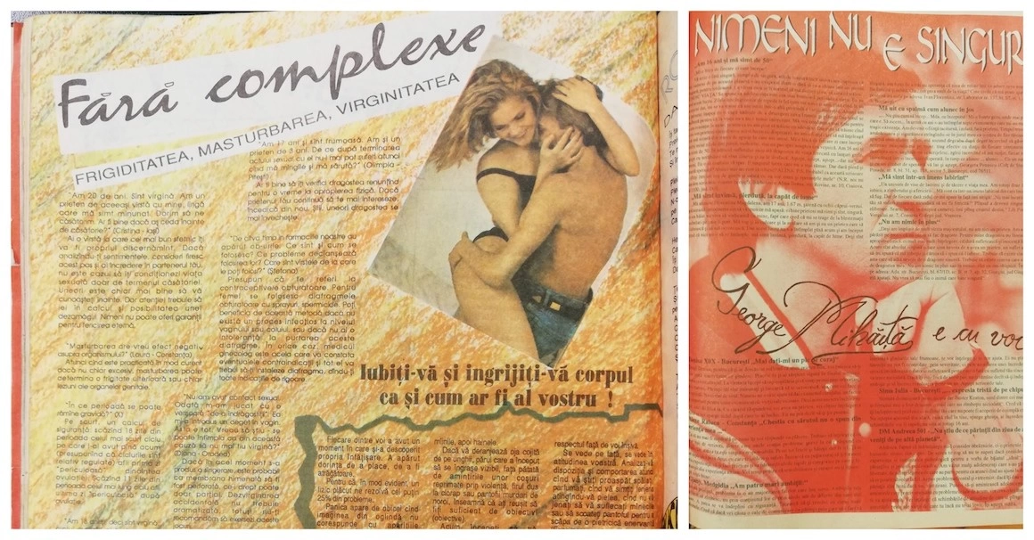 Partea bună e că publicații precum Salut - ziar fondat în 1990 de actorul George Mihăiță - ajung să fie niște platforme de educație sexuală pentru adolescenți. În timp ce la școală nu se vorbea mai deloc despre așa ceva, aici puteai să afli informații utile despre metode contraceptive și să primești sfaturi pe diverse teme legate de sexualitate (una dintre rubrici se numea „Fără complexe”).