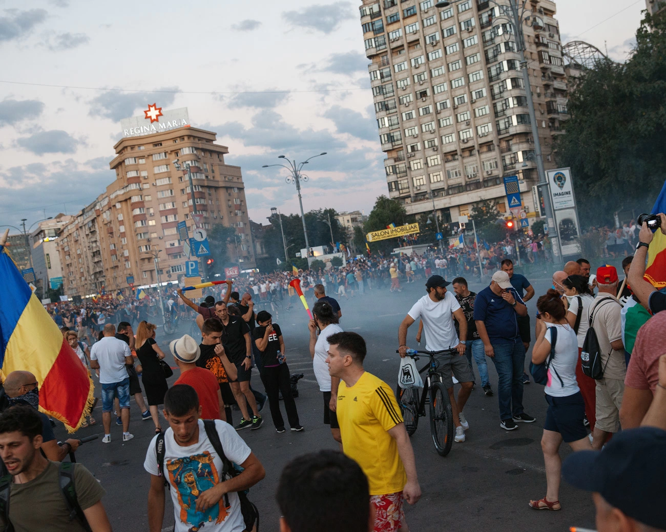 Mitingul de vineri a degenerat rapid. La ora 7, când am ajuns în Piață, se simțeau deja gazele lacrimogene. Au venit în valuri din ce în ce mai intense, pe care la anunța de fiecare dată o bubuitură ca de foc de armă. Asupra mulțimii s-a folosit un tun cu apă, din cele pe care le văzusem doar în pozele de la mineriade. La ora 12 noaptea, când încercam să ajung în capătul de București în care locuiesc, orașul arăta rănit: parbrize sparte, bucăți rupte de caldarâm, cordoane de jandarmi peste tot, fumigene, lacrimogene. Trei jandarmi au fost răniți – de îngrijiri medicale au avut nevoie circa 450 de protestatari.