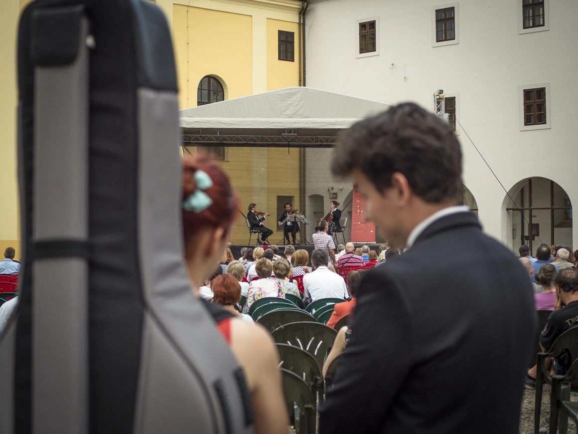Surpriza acustică a turneului. Ajunși în vasta curte interioară, ne-am suit ușor temători pe scenă, bănuind că sunetul unui trio de coarde se va pierde complet într-un astfel de loc. De la prima atingere a corzilor am simțit, însă, că fiecare sunet ajunge fără niciun efort până în ultimul cotlon al curții.