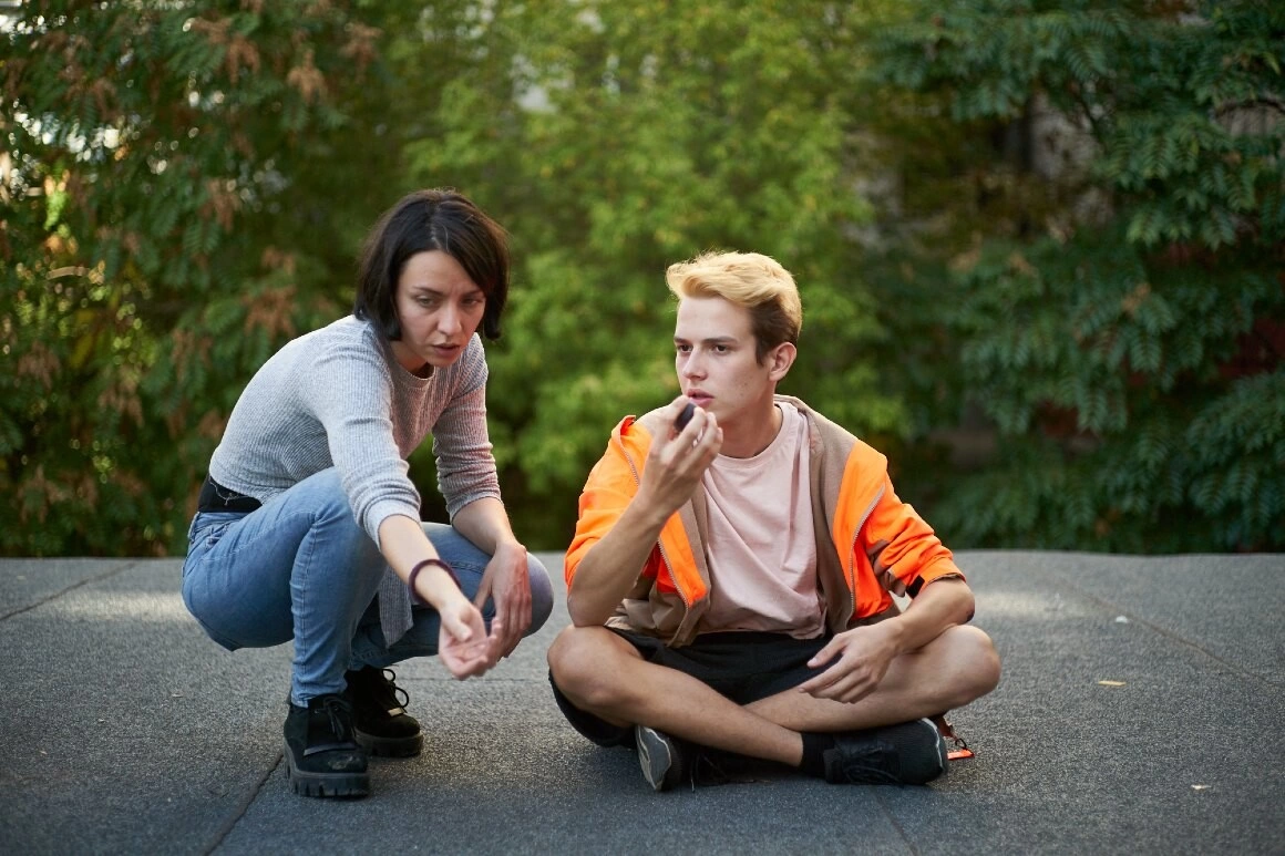 Andreea Borțun: Cred că majoritatea proiectelor la care am lucrat în ultimii patru ani s-au cuplat cumva la un proces de a găsi sens pentru niște chestiuni pe care nu le înțelegeam. Ultimele proiecte au început cu o explorare pre-narativă destul de lungă; scriu mult despre ce nu pricep și după aceea ajunge să se decanteze mai ușor ce e important și ce are și potențial să construiască o formă de narativ. În 2014, atunci când am început prima oară să mă gândesc la filmul ăsta, am plecat de la o imagine cu care m-am întâlnit într-o dimineață și pe care după aceea mi-a fost greu să o uit: doi puști care se plimbau prin iunie, foarte devreme în zi, cu un set de căști pe care îl împărțeau pe o alee îngustă din Herăstrău. Asta, cumulat cu senzația de corp într-un spațiu natural, carnal și el cumva, au pus în lumină o senzație, o formă de percepție care mă preocupa. Cred că filmul ăsta a fost mai degrabă pentru mine o încercare de a înțelege ceva despre limbaj: am vrut să văd dacă am cum să reproduc, cât mai aproape de ce e pentru mine adevărat, cum se simte pe dinăuntru ceva ce de obicei e invizibil în afară. În plus, mă pierdusem destul de mult în senzația că știu de fapt cum stau lucrurile cu puștimea, că încă nu sunt foarte departe de propria mea adolescență (not!) etc. Așa că atunci când am început să fac primele castinguri, am înțeles că trebuie să reevaluez cam tot și că mi-ar face bine și mie și proiectului, doar să stau să mă uit și să ascult o vreme.