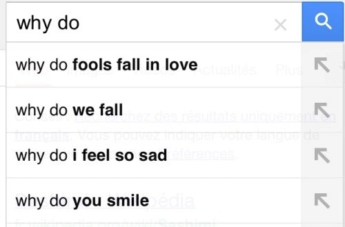 De prin 2012 încoace plutește pe internet o memă, apărută, ca majoritatea memelor, pe Tumblr și propagată pe Reddit. Enciclopedia memarilor KnowYourMeme datează apariția „curentului” pe 25 octombrie 2012, când a pornit cineva un blog pe Tumblr cu un singur subiect: cvasi-poeziile generate de Google, atunci când începi să tastezi un șir de termeni de căutare în câmpul motorului.
