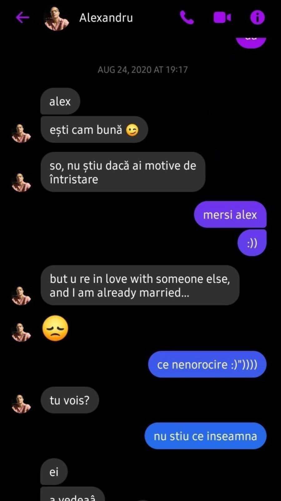 Mălina își amintește că Matei nu avea poză de profil cu fața lui, așa că tânăra credea că este pur și simplu încă un individ de pe Facebook care încearcă să se dea la ea.