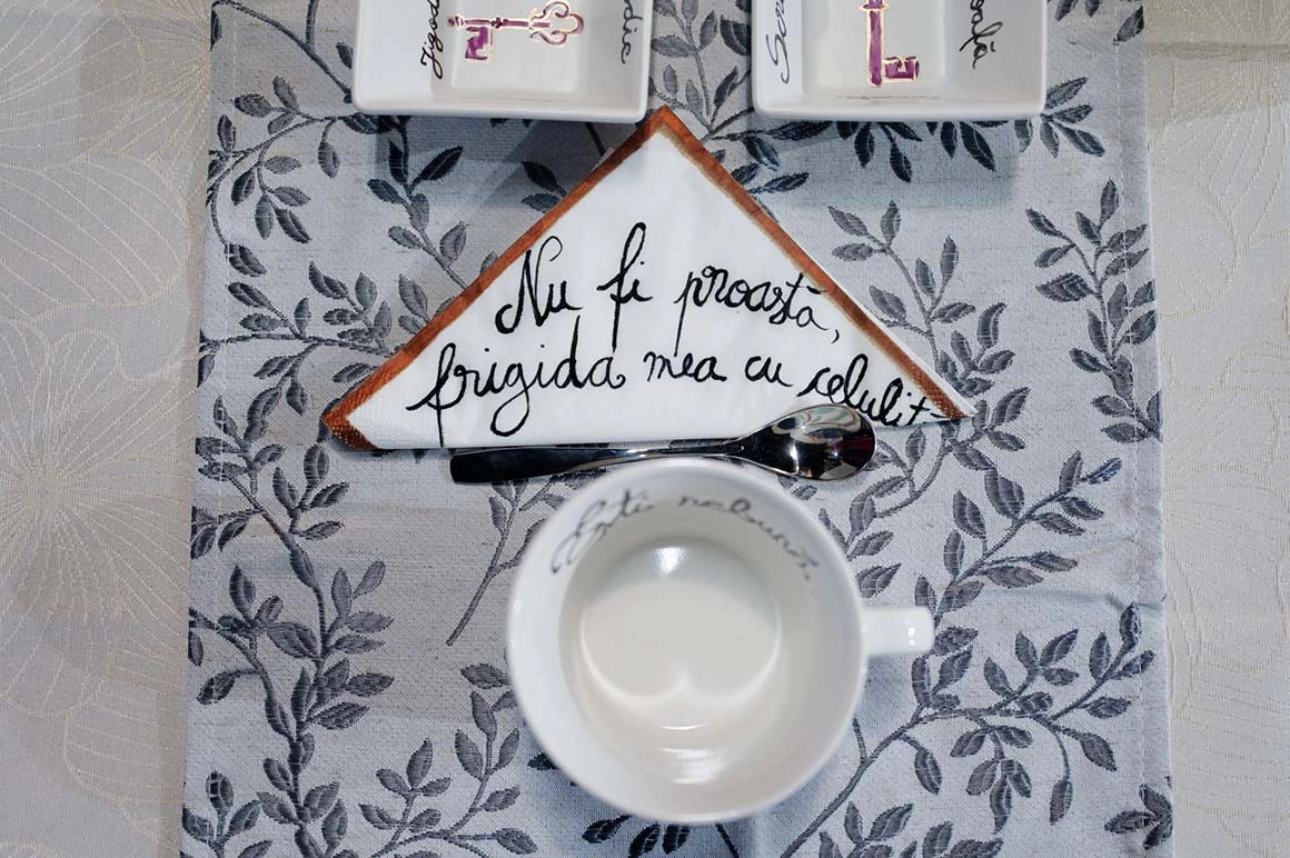 Oamenii se învârt dezorientați în jurul acestei mese-instalații. Sunt femei care plâng, femei care consideră că se împuternicesc prin curajul de a vizita expoziția, femei care rămân în tăcere cu câte un obiect delicat din porțelan între palme, bărbați care mă felicită pentru munca mea, bărbați șocați că am avut tupeu să aduc în lume aceste obiecte. E genul de instalație de artă care-ți creează multe trăiri, dar care nu te poate lăsa indiferent.