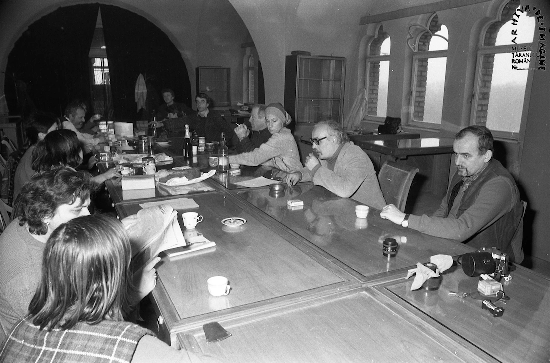 O făceam chiar noi. A fost aceeași mare bucurie pe care am avut-o lucrând la carte în echipă. Până atunci lucraserăm în cercetare, băteam la mașină și dădeam un număr de pagini pe trimestru, că atât ni se cerea. Și acum aveam posibilitatea să ne băgăm mâinile până la coate în vopseluri, în zugrăveli, să batem cuie, să ne tăiem, să ne lovim, să cărăm, să avem idei. Încercam o anume culoare, nu ieșea, încercam altceva. De unde până atunci eram cumva pasivi, acum făceam lucruri. Și a fost o bucurie extraordinară. Și chiar era bătaie: toată lumea voia să facă lucrurile astea, toată lumea căra găleți, amesteca vopseluri. Bernea ne mai arăta din când în când cum se face și simțeam că l-am luat pe Dumnezeu de-un picior.