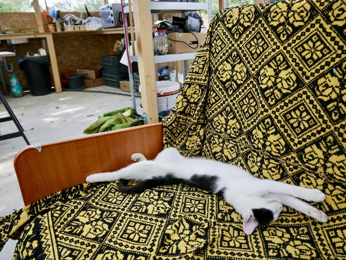 Stăm într-un foișor, alături de un pisoi stă tolănit pe canapea, cu ochii închiși și cu burta în sus, așteptând să fie mângâiat. „De ce aveți pisici?”, întreb. „Pisicile au rostul lor”, spune Alex, calculând ceva în minte. „Din cinci morcovi pe care îi plantăm, unul este mâncat de șoareci. Dacă plantăm 4.000 de morcovi, pierdem 800 de morcovi. De aceea avem pisici.” „Este în spiritul permaculturii și al agriculturii regenerative ca pisicile să omoare șoareci în fermă?”. „Este în spiritul unei gospodării”, spune Alex. „Este vorba despre input și output și despre sprijinirea regenerării lanțurilor trofice, care contribuie la echilibrul și rezistența unui ecosistem. Are de-a face cu natura, oamenii și banii. Asta este permacultura.”