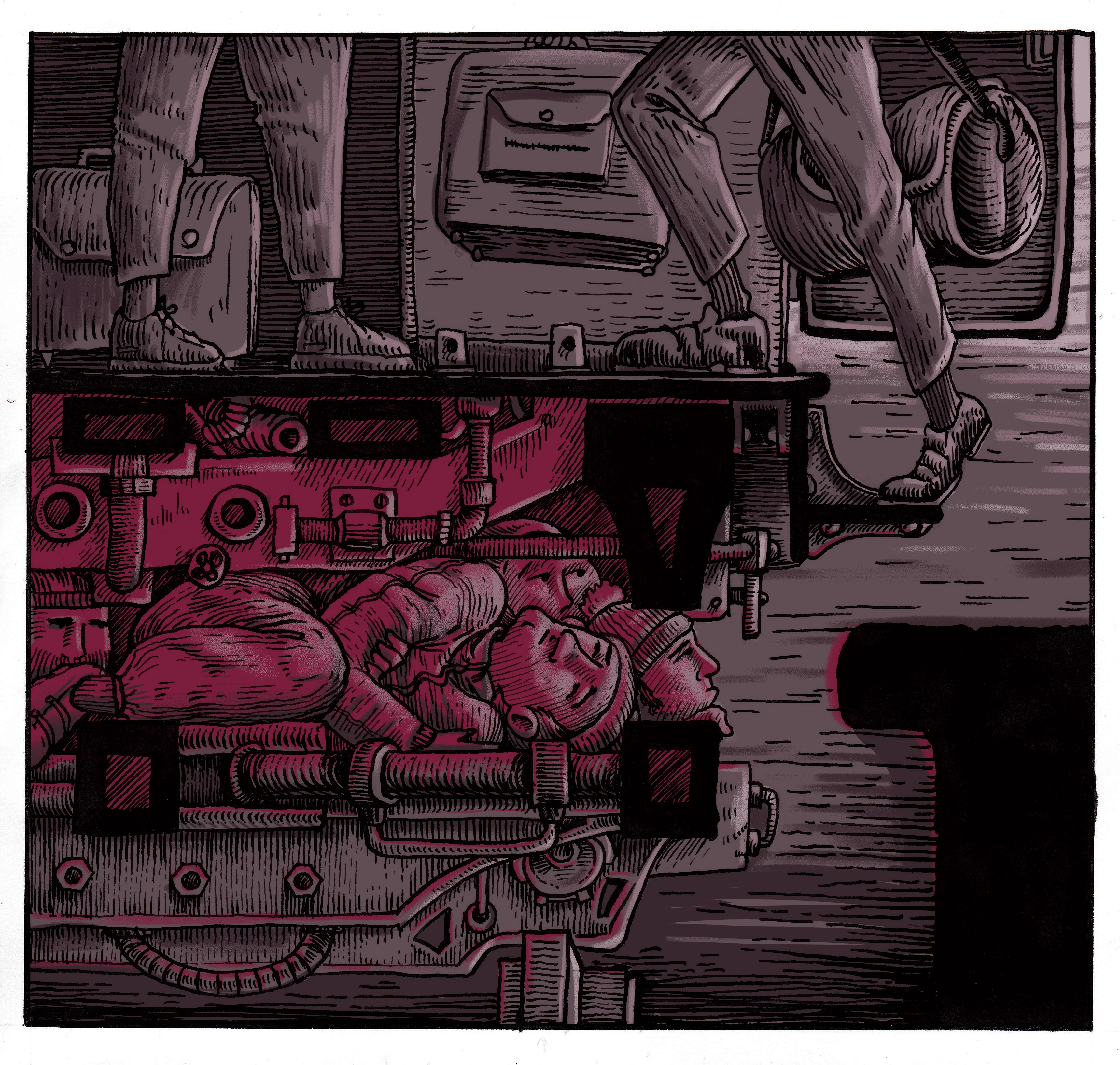 Erau oameni pe aici care știau pe unde poți să treci granița dintre Ungaria și Austria. Auzisem eu de ceva barcă cu niște băieți și unu’ care îi trece drumu’. Trebuia să-i dai bani. I-am dat un lănțișor de aur și i-am spus să meargă la părinții mei, să-i dea cât trebuie pentru drum. Alor mei le-am zis că mă duc să dau iar la facultate, la Politehnică, în Timișoara. Aveam 21 de ani. Pe vremea aia, mama când tăia porcul, punea carnea într-un borcan plin de untură. Mi-a pus un borcan la mine și o pâine. Ne-am dus la ăla, eram nouă inși în microbuz, cu destinația Viena. Am trecut pe la Petea, legal, frumos. Microbuzul ne-a lăsat undeva, la granița dintre Ungaria și Austria. De acolo am mers pe jos o noapte, până am ieșit din zonele controlate de grăniceri, apoi ne-am urcat în alt microbuz care ne-a dus până-n Viena. Ne-a abandonat într-un parc, la intrare în oraș. Unul dintre tipii cu care am fost cunoștea pe nu-știu-cine, care a venit să ne închidă sub tren, unde sunt niște țevi cu o platformă. Am stat trei zile în parc să-l așteptăm. Era un frig noaptea, mamă, ce frig era. Deja eram rupt de foame, mâncasem tot borcanul. A apărut tipul, ne-a închis între țevile alea. Era o tablă groasă. Nu puteai să stai întins pe spate de tot, că erau niște țevi transversale, și-ți intrau alea ori în șolduri, ori în spate. Mergeai la toaletă în pungi, în sticle. Eu am nimerit chiar la scară și vedeam pantofii oamenilor cum urcă, cum coboară. Am stat 24 de ore sub trenul ăla, din Viena până la Paris. S-a oprit trenul. Am stat așa o oră, ne-am temut să ieșim afară. Se făcuse o liniște totală. Am urcat în tren să ne spălăm. Aveam albul ochilor, în rest eram negru tăciune. Toată pilitura de la frânele de tren îți intra în față, în ochi. Ce băi aveau trenurile alea! Am rămas super impresionat. După ce-am ieșit, m-am trezit singur în gară, fără niciun ban la mine, rupt de foame. Dar aveam la cine să mă duc. Aveam un prieten în Paris și m-am dus să-l caut. Am umblat pe străduțe. Mi-am scos cartea de Eminescu din geantă, m-am pus să citesc poezii. Francezii aruncau câte-un bănuț. Am dat până la urmă și de prietenul ăla al meu. Am stat într-o casă abandonată, a fost groaznic. Era scandal, erau bătăi, bețivănii.