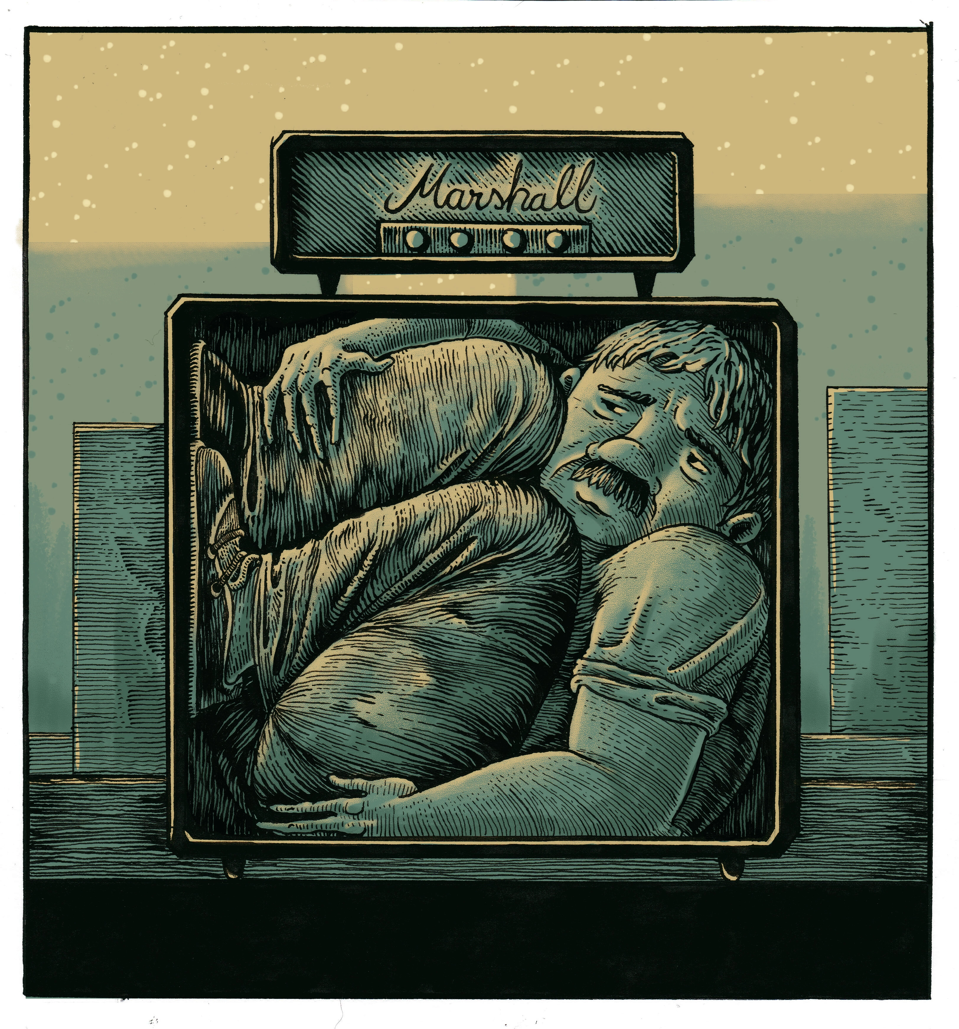 Ajungem la Dunăre. Noaptea, se vedea jos barajul. Am început să-i înșurubez în boxe. Aveam gaură în palmă de la șurubelniță, că erau 28 de șuruburi lungi la fiecare boxă. La graniță, s-au dus ăștia cu kalashnikov, au deschis ușa la camion, au văzut boxe până sus. În față am pus un coș cu franzele proaspete, care miroseau frumos, și unul cu cârnați de Banat care fac poc când îi rupi. Au rupt un cârnat și au început să mănânce. Și am tăiat-o peste baraj. Dincolo, la sârbi: beznă. Nici măcar un kalashnikov. M-am dat jos, am început să bat în geamuri. Zic: „Formația Phoenix, rock’n roll, Germania, trebuie să cântăm”. Mi-au dat un vraf de formulare să le completez. Am stat acolo o oră și jumătate și am scris. Mi-au ștampilat formularele și am plecat. Se făcuse dimineața, începuse ușor să se lumineze, dar era o ceață de nu vedeai la trei metri. Pe malul celălalt al Dunării sunt niște munți în zigzag. Am mers, am mers și la un moment dat ieșim pe un vârf de munte, imaginează-ți, trei brazi și până la orizont numai nori albi. Primele raze aurii ale dimineții. „Trebuie să-i scot p-ăia”, mi-am zis. I-am scos afară. „Unde suntem, unde suntem?”, m-au întrebat. „În Rai”, le zic.