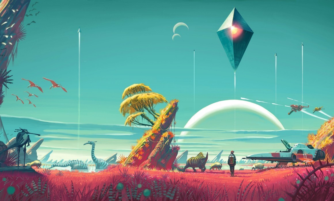 Ce am descoperit: No Man’s Sky. Un joc action-adventure cu estetică SF, lansat fix acum o săptămână pentru PC. Jocul care ar fi putut să mă facă să mă îndrăgostesc de matematică.