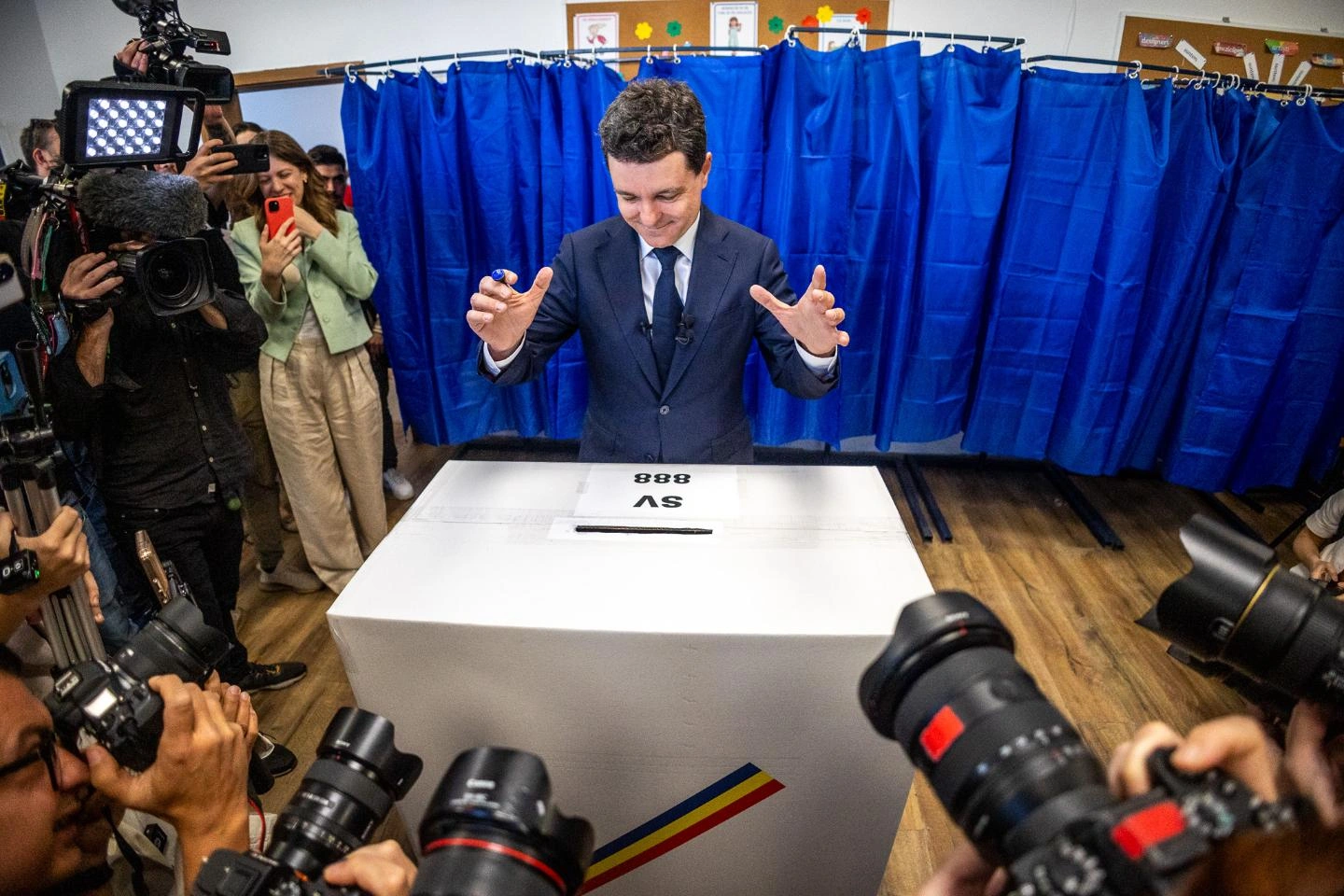 George Simion & Călin Georgescu au votat, însoțiți de suporterii lor, la Școala gimnazială nr. 1 din Mogoșoaia.