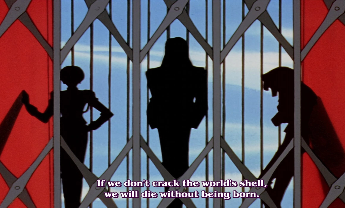 Deși menționarea tinerilor care se sinucid pare din alt registru emoțional, scena descrie foarte bine filosofia lui Ikuhara, pe care avea să o dezvolte în următoarele creații ale sale, mai ales în Mawaru Penguindrum. În spatele personajelor bizare și al peisajelor suprarealiste, al melodramei și al momentelor de (aparentă) prolixitate narativă, se ascunde trauma de-a te naște într-o generație alienată de valori conservatoare, captivă în ele și fără cale de ieșire. O situație cu care mi-a fost ușor să empatizez.