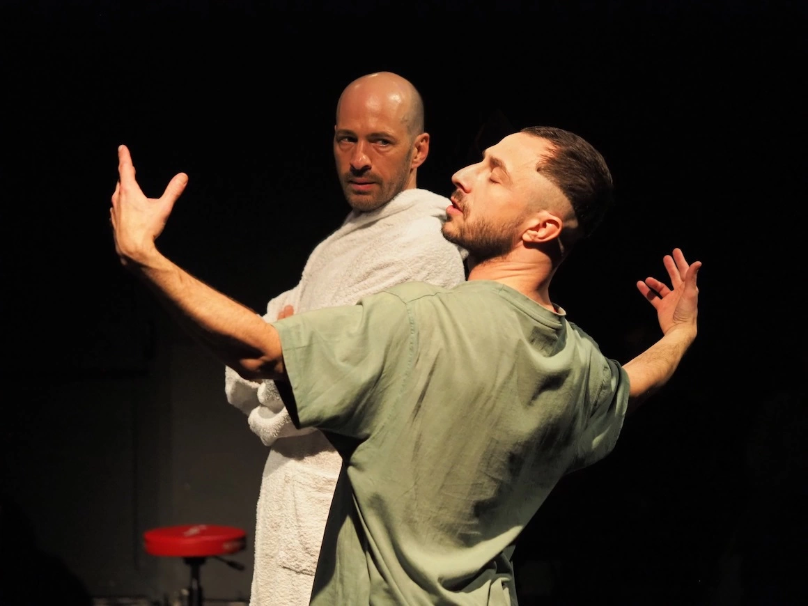 Trap este un spectacol de Bogdan Georgescu despre alcoolism, construit sub forma tribulațiilor interioare – neasumarea dependenței - ale unui personaj generic, Ion, redat în trei variante din perspectivă queer. Publicul este așezat în cerc, ca la ședințele de la Alccoolicii anonimi, cu cei trei actori, George Albert Costea, István Téglás, Răzvan Omotă /Raj Alexandru Udrea printre spectatori. Sunt niște recitaluri grozave de actorie pe care le dau cei trei actori (Omotă / Udrea sunt pe dublu rol, am văzut varianta cu Omotă), construite cu mare atenție la tonalități, gesturi și mimică, bijuterii de caractere interpretate aproape filmic, cu două, trei trușe fine și o multitudine de tonuri, priviri, tăceri.