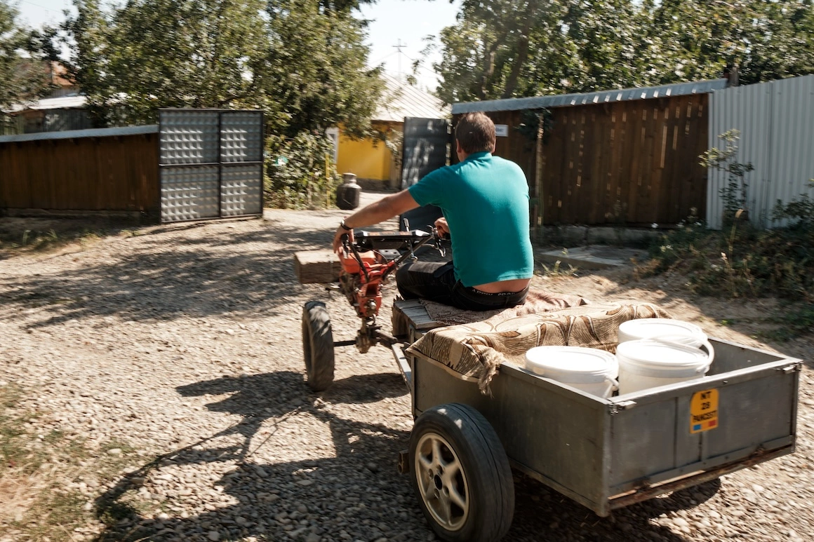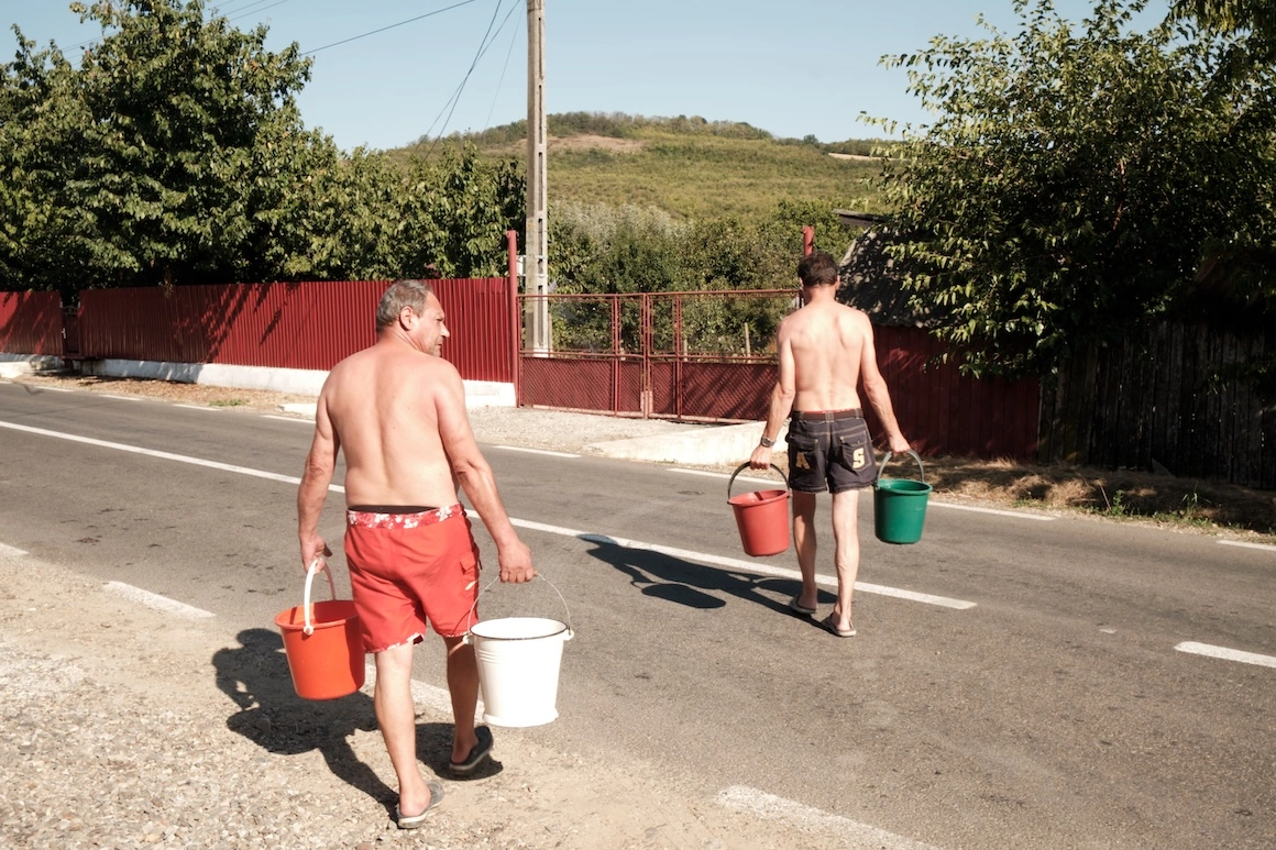 „Se cară 30-40 de tone de apă pe zi”, spune Ionuț, care, ajuns la 30 de ani, poate spune că s-a născut, a crescut, și și-a întemeiat până și o familie într-o criză continuă de apă. „Din 2021, îmi umplu fântâna cu apă de la rezervor. Am plecat de acasă acum trei ore ca să aduc apă”, spune Ionuț, care are o remorcă cu un cub transparent de apă în spatele Audiului negru lucios.