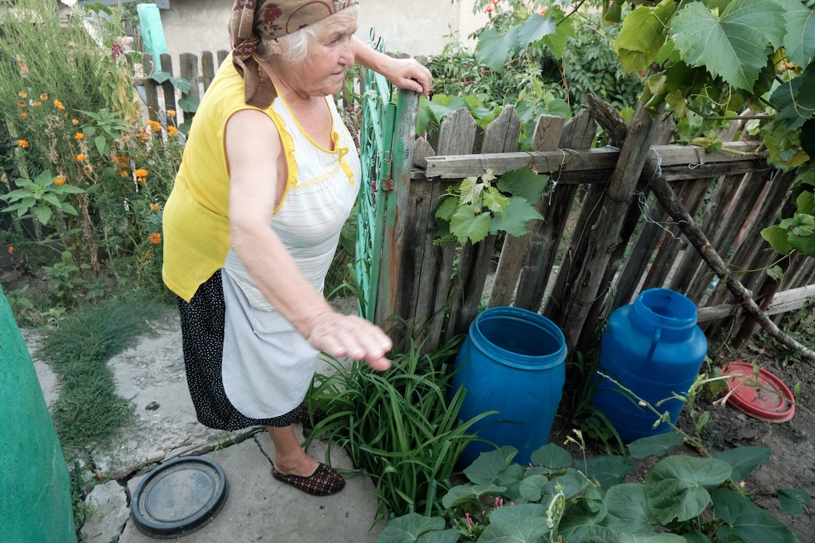 În Coștiugeni, județul Botoșani, Aurelia Andrei (83 de ani) intră într-o cameră scundă care-i servește drept bucătărie de vară cu o găleată metalică. O descoperă pentru a arăta că înăuntru e apă tulbure. „Aștept să să lase nisipul la fund și cu apa asta îmi gătesc, că dacă e să mă duc până la magazin, îmi ia o oră doar să mă duc. Dacă m-aș întoarce cu apă îmbuteliată, nu aș mai ajunge acasă”, spune Aurelia.