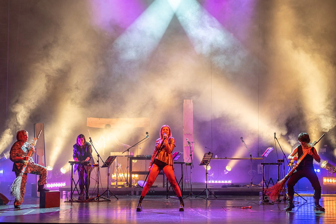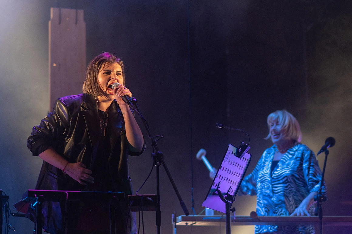 Cumva, lucrurile s-au coagulat bine la Piatra Neamț și asta se vede din spectacol. Esinencu a fost însoțită de actrița Doriana Talmazan de la Teatru-Spălătorie, care a lucrat cu colegele ei de la Piatra Neamț. Actrițele – Lucreția Mandric, Corina Grigoraș (cu un look care trimite la Pink), Ruxandra Maniu, Iulia-Paula Niculescu și Daria Tămăslăcaru (16 ani) au funcționat bine în acest sistem, găsindu-și fiecare ritmul propriu și dinamica dintre ele. Sunt explozive, subversive, dive și cinice, acționează dezinvolt pe mai multe planuri artistice – universul sonor este creat live aproape integral de către ele — , conștiente de propria vulnerabilizare prin confesiune și forță prin solidaritate scenică. Paul-Ovidiu Cosovaru și Daniel Chirilă au făcut lucruri spectaculoase pentru componenta muzicală, aici dominantă, cu trei toace bisericești folosite ca instrumente muzicale și cu chitări create din mături de nuiele. Ambele tipuri de instrumente sunt ingenioase și conectate cu tema spectacolului prin reconvertirea simbolurilor asociate cu religia și cu demonizarea femeilor.