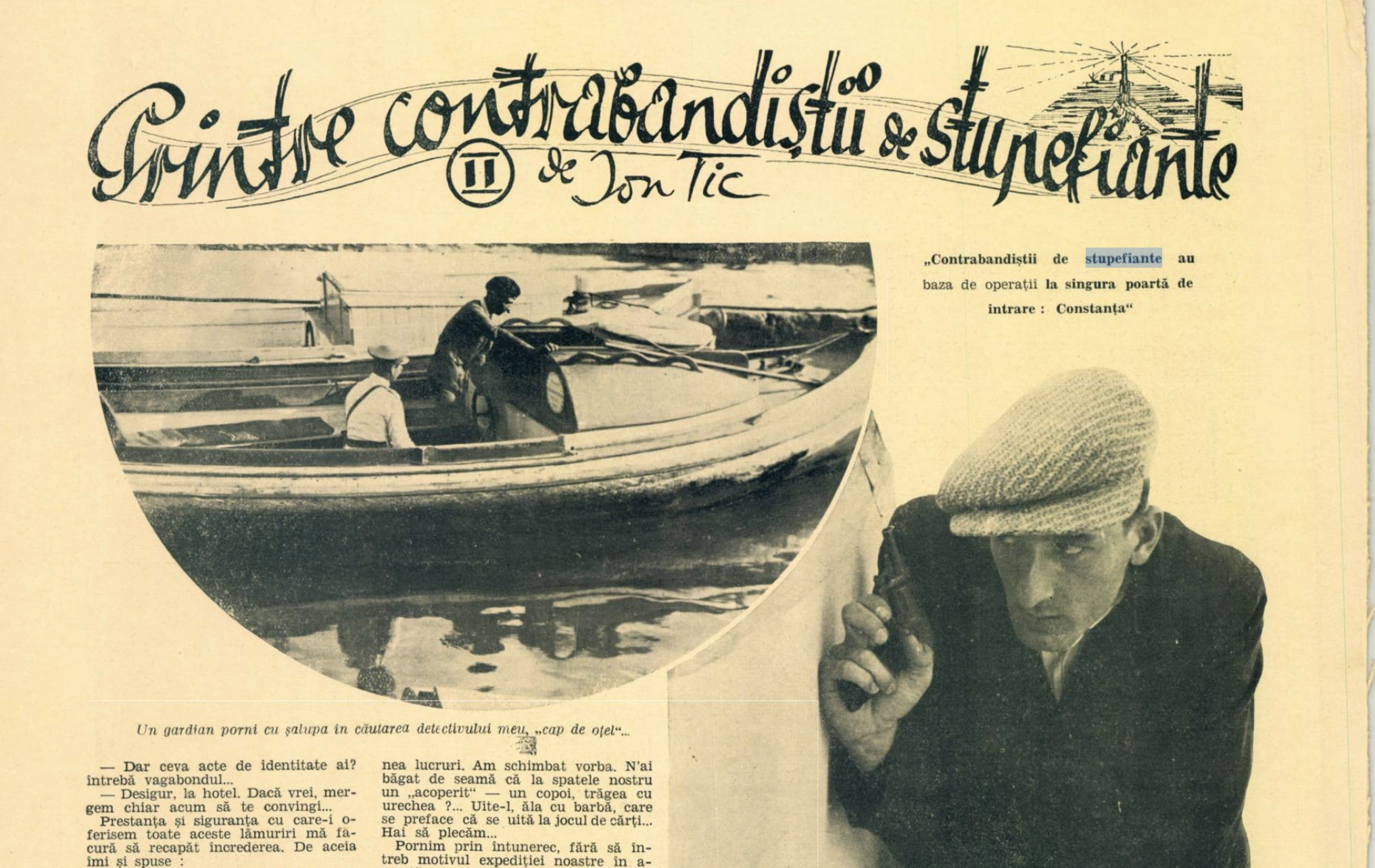 „Acolo debarcă contrabandiştii, acolo fac legătura cu bandele internaţionale care strecoară cantităţi uriaşe, prin cele mai nebănuite mijloace. La Constanţa, cercetând ascunzişurile, bătătorind drumurile, răscolind cafenelele, vizitând vapoarele, am putut vedea şi auzi lucruri pe care, dacă le-aş fi cetit undeva, aş fi crezut că sunt, în cel mai bun caz, fantezia vreunui autor de romane senzaționale.”