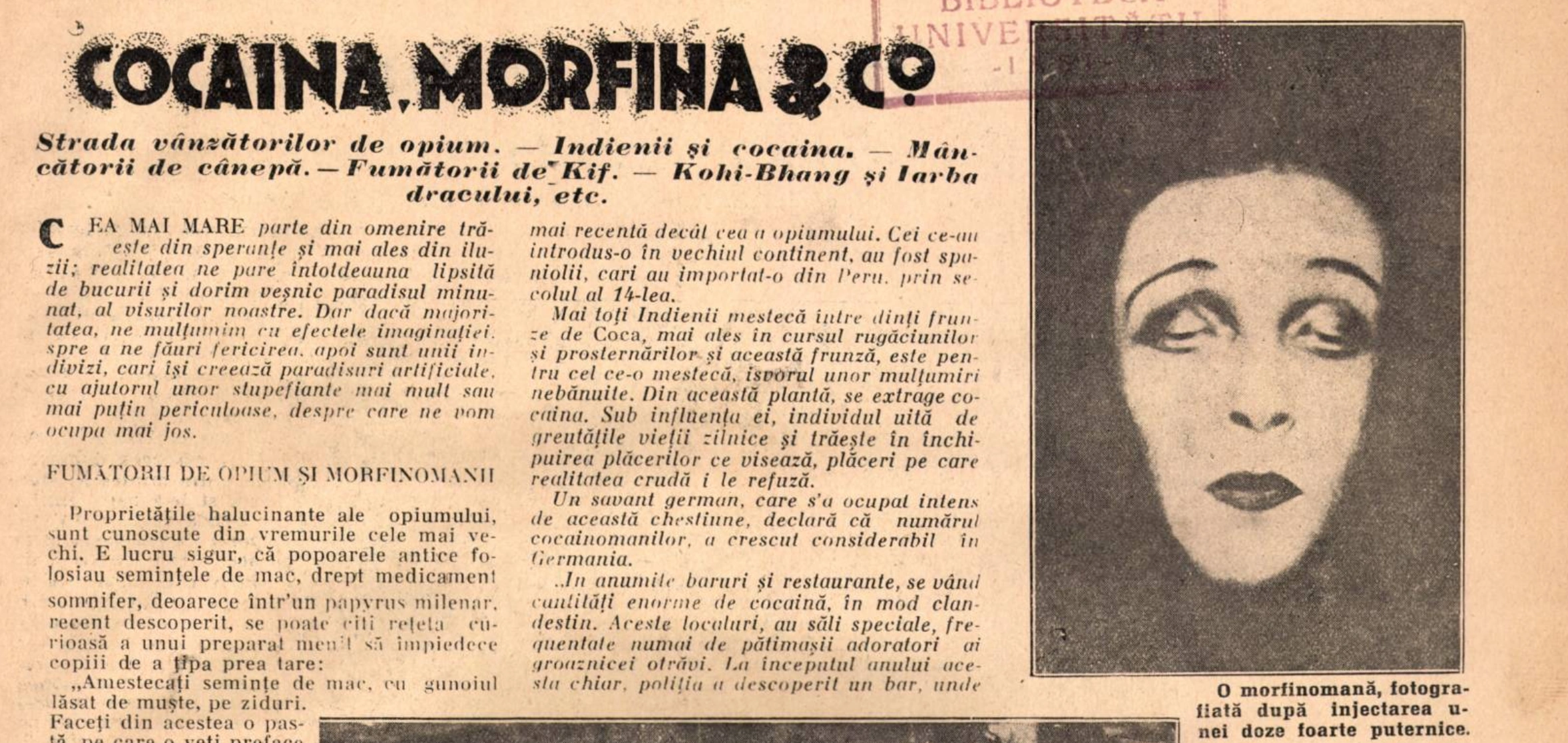 Pornind de la aceste premise, am căutat mai multe informații în arhive ca să văd cum se contura discursul legat de droguri în presa românească de după Primul Război Mondial.
