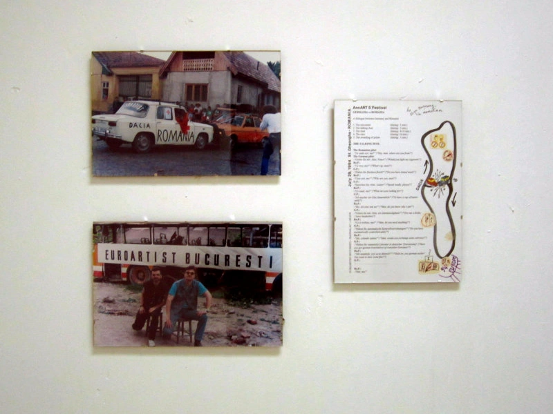 Încep cu Olimpiu Bandalac și Teodor Graur, adică grupul Euroartist „din București”, care înscenează o întâlnire între o Dacie și o mașină nemțească, la un festival de performance din anii ’90. Teoreticienii post-coloniali sau de-coloniali ar avea de ce să zâmbească, văzând în lucrarea asta o abordare plină de umor a relațiilor Est-Vest.