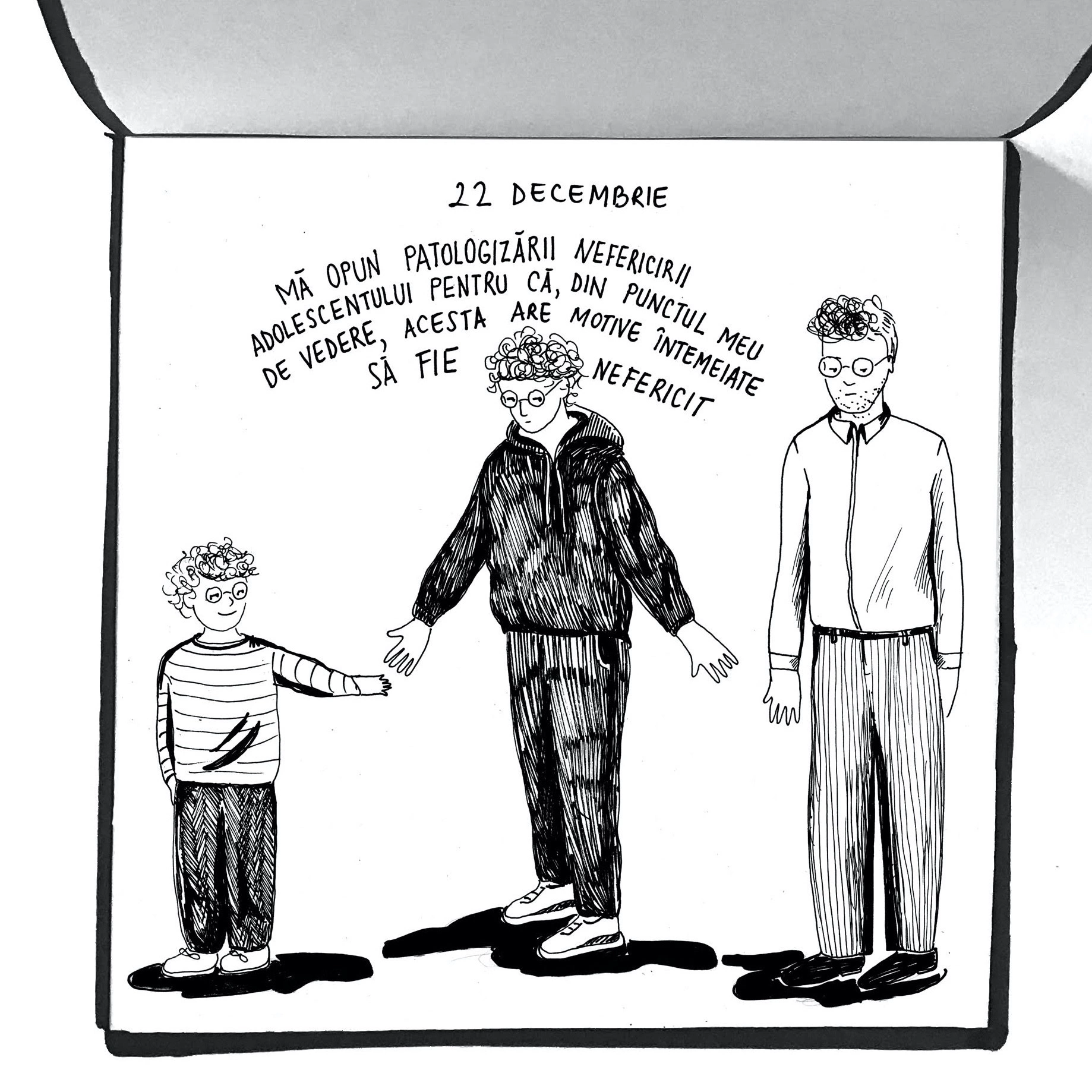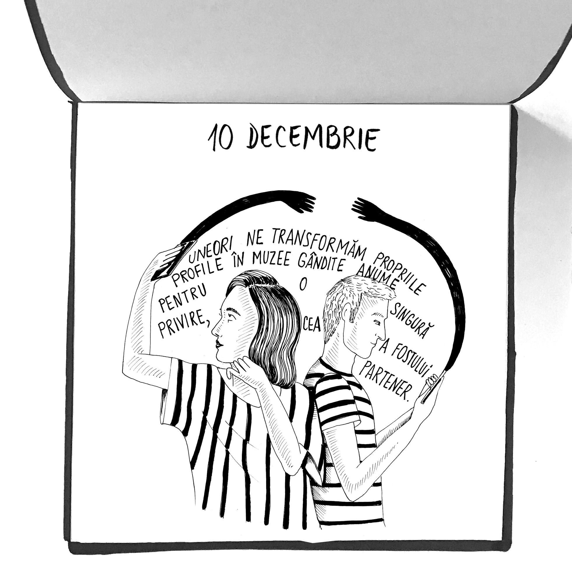 „Să îmi dați fiecare dintre voi din redacție câte un citat sau mai multe dintr-un articol sau interviu, o frază dintr-o carte, o întâmplare din 2019 care v-a plăcut cel mai mult și eu să o ilustrez și să apară în fiecare zi din decembrie până la Crăciun, câte una, ca o bomboană digitală. Ceva scurt și frumos.”