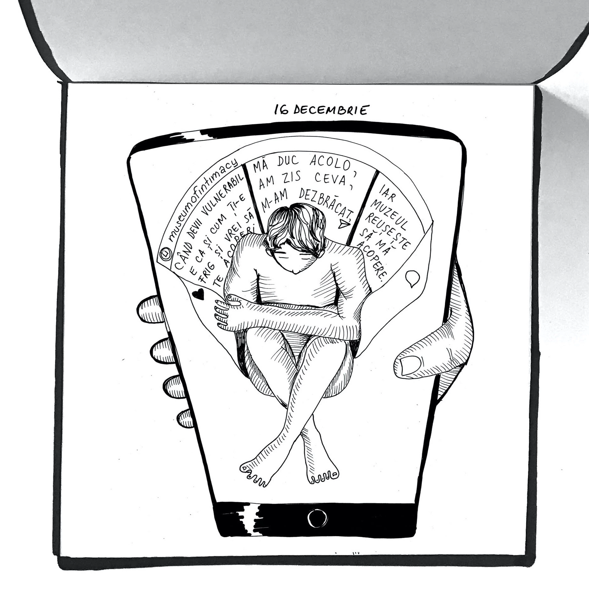 „Muzeul intimității e gândit ca un adăpost virtual sub protecția căruia ne dăm, în sfârșit, voie să fim vulnerabili și să ne privim cu empatie. „Când devii vulnerabil, e ca și când ți-e frig și vrei să te acoperi. Mă duc acolo, am zis ceva, m-am dezbrăcat, iar muzeul reușește să mă cuprindă.”