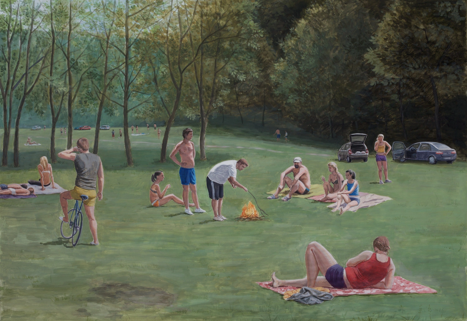 L-am vizitat prima oară pe pictorul Şerban Savu primăvara trecută, în atelierul său din Cluj-Napoca. Făcea ultimele pregătiri pentru Bienala de la Veneţia. Pe unul dintre pereții unei camere largi şi luminoase, cu plante şi cărţi, lipise laolaltă câteva schițe mici, desenate pe foi de calc, ce formau împreună o scenă de picnic: oameni adunați în jurul unui foc de grătar, unii tolăniți pe pături, într-o atmosferă lipsită de griji. Un ritual de loisir perpetuat de români decenii la rând și o imagine iconică pentru Savu.