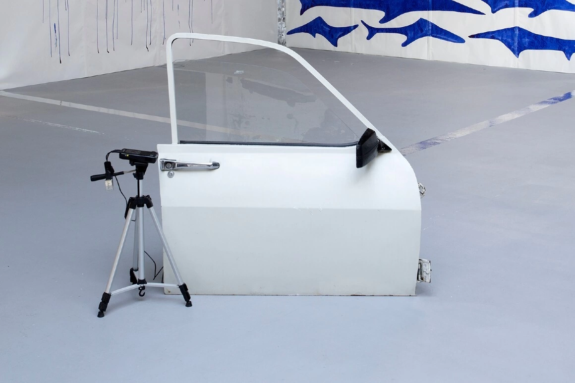 Povestea lucrării One-armed Race against Memory începe cu amintiri din perioada timpurie a existenței mele, a unei mașini Dacia 1300 albastră condusă de către bunica mea, care a fost oferită mai apoi părinților în dar. Acum doi ani, când am conceput proiectul, procesul de creație a fost bazat pe afectul personal vizavi de obiectul care a marcat o bună parte din copilăria mea și care este pe cale de dispariție, luptând contra uitării ca parte din „arhiva” popular-națională. Mini-proiecția video de pe oglinda retrovizoare a unei portiere albe de Dacia 1300 aduce o retrospectivă asupra trecutului într-un ton ludic, personal, în montajul filmului. Imagini de la Revoluție sunt îmbinate dinamic cu reprezentația Nadiei Comăneci din 1976, o filmare a unor fructe ca o natură statică face paralela către destructurarea și dematerializarea memoriei în timp, iar fotografiile din arhiva personală a familiei creează un traseu asupra întâmplărilor membrilor arborelui genealogic în perioada comunistă. Se poate spune că vizitatorul este integrat în această privire recapitulativă a întâmplărilor colective, dar și familiale.