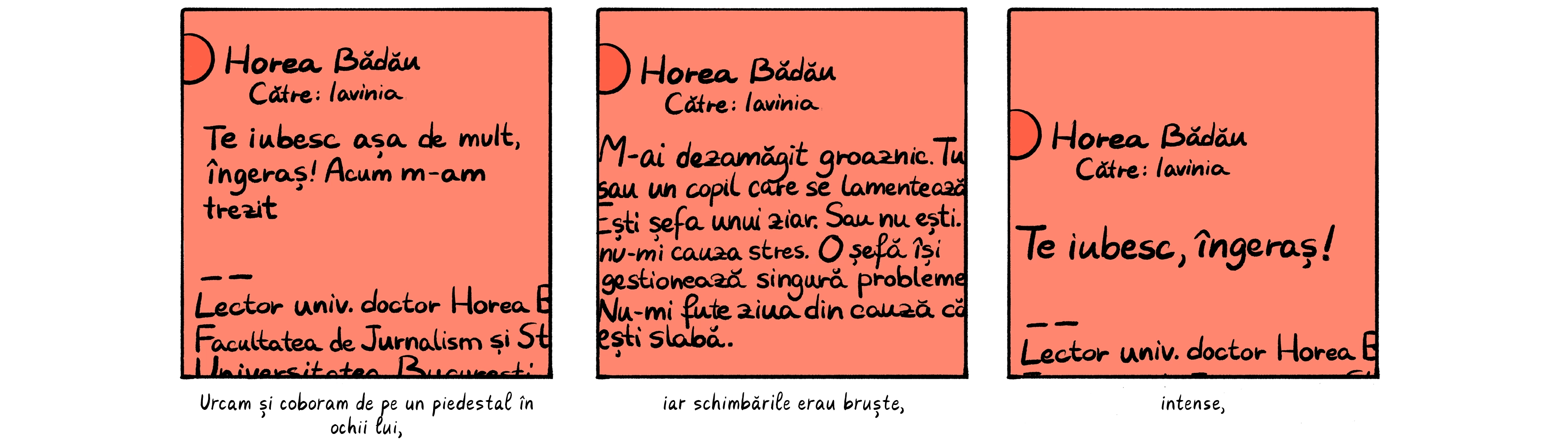Bădău a negat că ar fi hărțuit vreodată pe cineva, iar FJSC și Universitatea din București spun că au toleranță zero pentru orice formă de abuz. La momentul publicării acestei benzi desenate cazul Bădău este discutat de Comisia de Etică a UB.