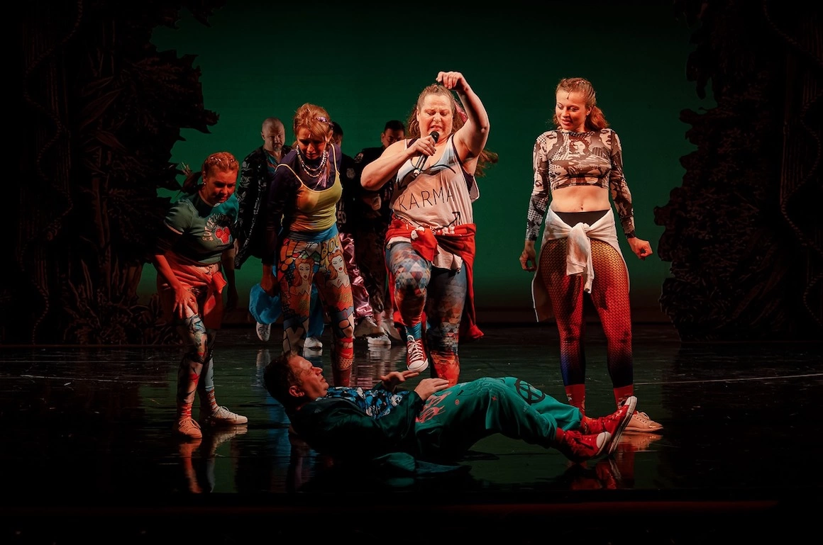 Ce rezultă este o punere în scenă, la propriu, a unor documente într-un mecanism de interpretare pluriperspectivată, contextualizată istoric și recontextualizată în prezent. Cadrul ostentativ convențional, care susține ieșirile la vedere din convenție, este redat vizual de scenografia Irinei Moscu prin peisaje și dinozauri sub formă de imagini butaforice a căror artificialitate cadrează cu dezbaterea de idei, nu cu narativitatea. Costumele colorate, stradale, casual-fancy, capătă uneori accente strident stereotipe (ciobanul român poartă un cojoc lung de blană de oaie, o decizie artistică în aceeași direcție de a semnala că se jonglează cu categorii, concepte și simboluri, nu cu o narațiune clasică). Muzica este punk-rock, cu tot felul de accente, de la electronic la hip-hop, trecând printr-un pic de muzică lăutărească sau cântece de copii. Acest arsenal de interpretări, reprezentări, cadre istorice recontextualizate în prezent, glisare între documentar și ficțional, cu multiple narațiuni, unele arborescente, dar în același timp discontinue și incomplete, cu personaje, dar fără caractere, spectacol de text, dar cu multă muzică, deci acest mecanism dramatic complicat are nevoie de actori capabili de dexterități ludice, care să treacă fluid dintr-o convenție în alta și dintr-un personaj în altul, cu instrumente diferite și fără reflexele de a psihologiza personajele. Nu mai zic de abilități muzicale și de mișcare, spectacolul fiind solicitant din acest punct de vedere. La Teatrul Szigligeti s-au găsit astfel de actori versatili care funcționează ca un ansamblu de individualități bine coagulate, mai degrabă ca o năstrușnică orchestră de jazz decât una simfonică.