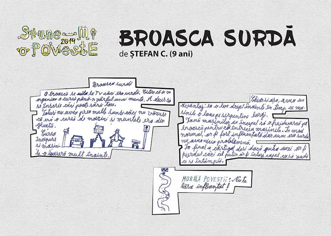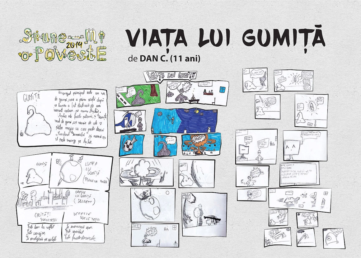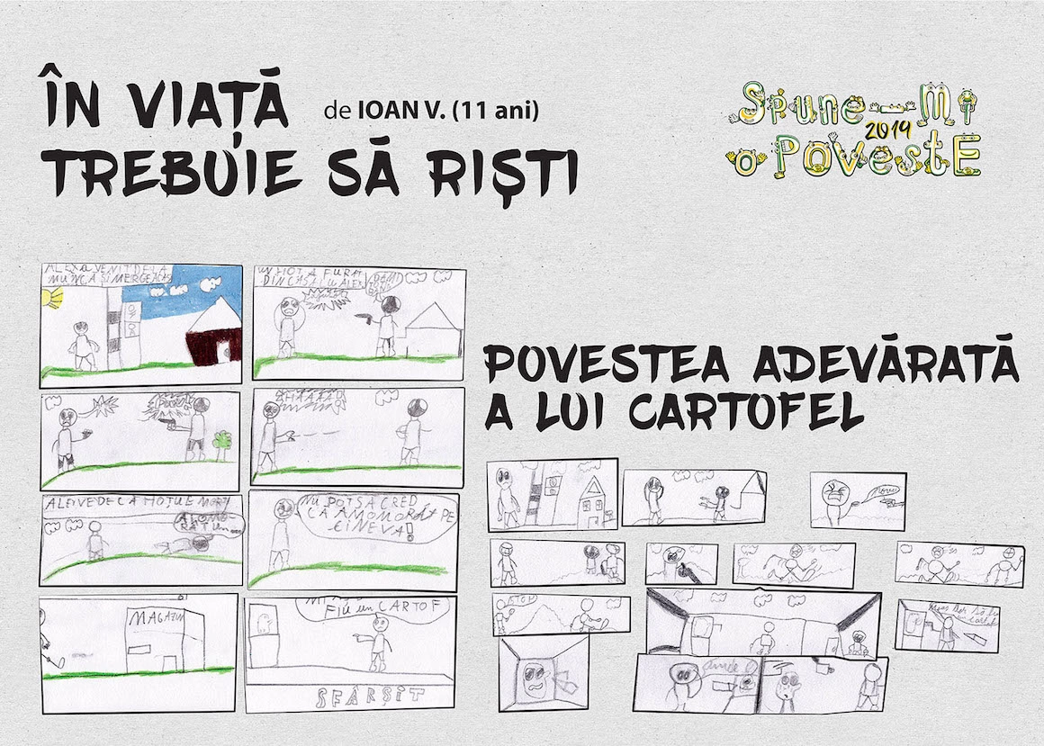 Timp de două luni, în aprilie și mai 2019, Asociația Volum Art a derulat proiectul „Spune-mi o poveste”, în cadrul căruia mai mulți copii din București au participat la ateliere în care au învățat să ilustreze povești și să descopere tehnica benzilor desenate. Rezultatul se poate vedea într-o expoziție care se deschide azi, pe gardul de incintă al MNAR dinspre Calea Victoriei. Acolo vor fi expuse cele peste 20 de benzi desenate și povești ilustrate: