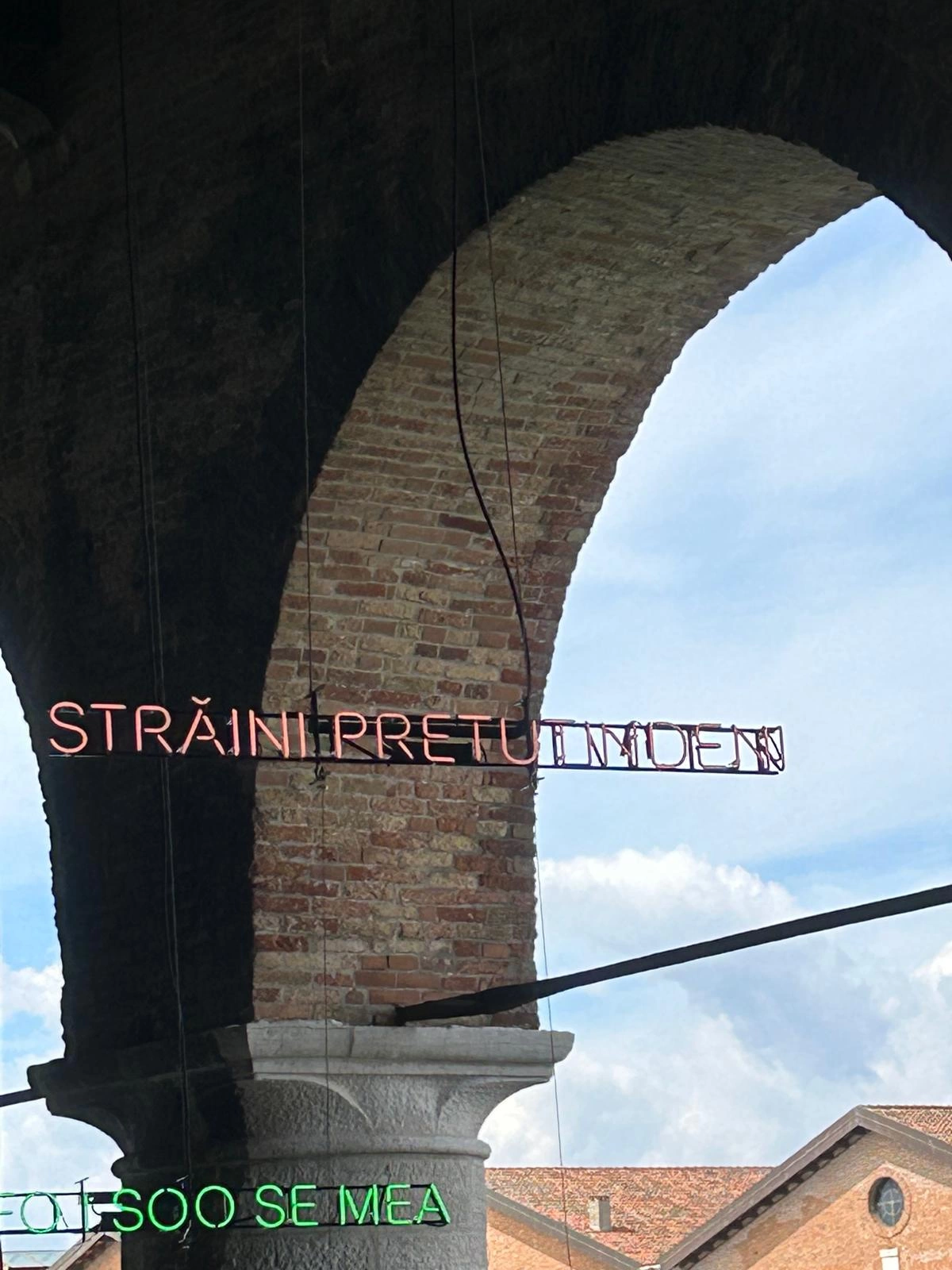 Mai mult ca orice, în Giardini della Biennale se simte ecoul situației din Palestina, nu doar în fața pavilionului Israelului (păzit constant de soldați), ci peste tot. „Pentru mine, cel puțin, e greu de ignorat faptul că din vaporetto-ul spre muncă, în fața intrărilor și printre pavilioane, văd constant grupuri de carabinieri, soldați și poliție care orbitează în jur”, mi-a spus Alexandra Vaman, o tânără româno-venețiană care e custode de șapte ediții, încă de când era la liceu, și care lucrează anul acesta pentru Pavilionul Poloniei. Alexandra adaugă că ediția curentă are mai multe intrări decât precedenta și pune asta pe seama succesului Bienalei din 2022, cu un număr record de intrări – peste 800.000. Cu toate astea, zice tânăra, cea de anul acesta „este o Bienală mai severă”, cu „mai multă politică explicită decât în alte ediții.”