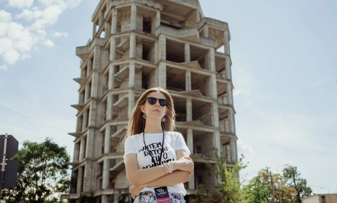 Poza vorbește de la sine. Povestea „turnului înclinat” din Câmpina e în felul următor: construcția a început 1997. În planurile inițiale, viitoarea clădire de birouri avea 4 etaje, însă constructorul a ridicat încă 3 (fără aprobare), ceea ce a afectat structura de rezistență a clădirii. Proiectul a fost abandonat în 2003. Tot ce-a mai rămas e aspectul absolut deprimant al „turnului”. Cu toate astea, schimbarea este posibilă. Am ales acest loc pentru că e bine cunoscut de toți câmpinenii și, inevitabil, atrage atenția trecătorilor. Eu văd un potențial estetic enorm. Imaginați-vă: acei pereți odioși de beton acoperiți de picturi murale și graffiti. E spațiul perfect pentru tinerii pasionați de artele vizuale care vor să se exprime. Astfel, artiștii locali sunt sprijiniți și își pot face un renume. Și eu sunt pasionată de pictură și desen și, deși nu mi-am ales o carieră în acest domeniu, m-aș bucura enorm să văd spațiile din orașul meu decorate chiar de câmpineni. „Turnul din Pisa”, varianta prahoveană, ar putea deveni un landmark. (Ana Bucur, 19 ani)
