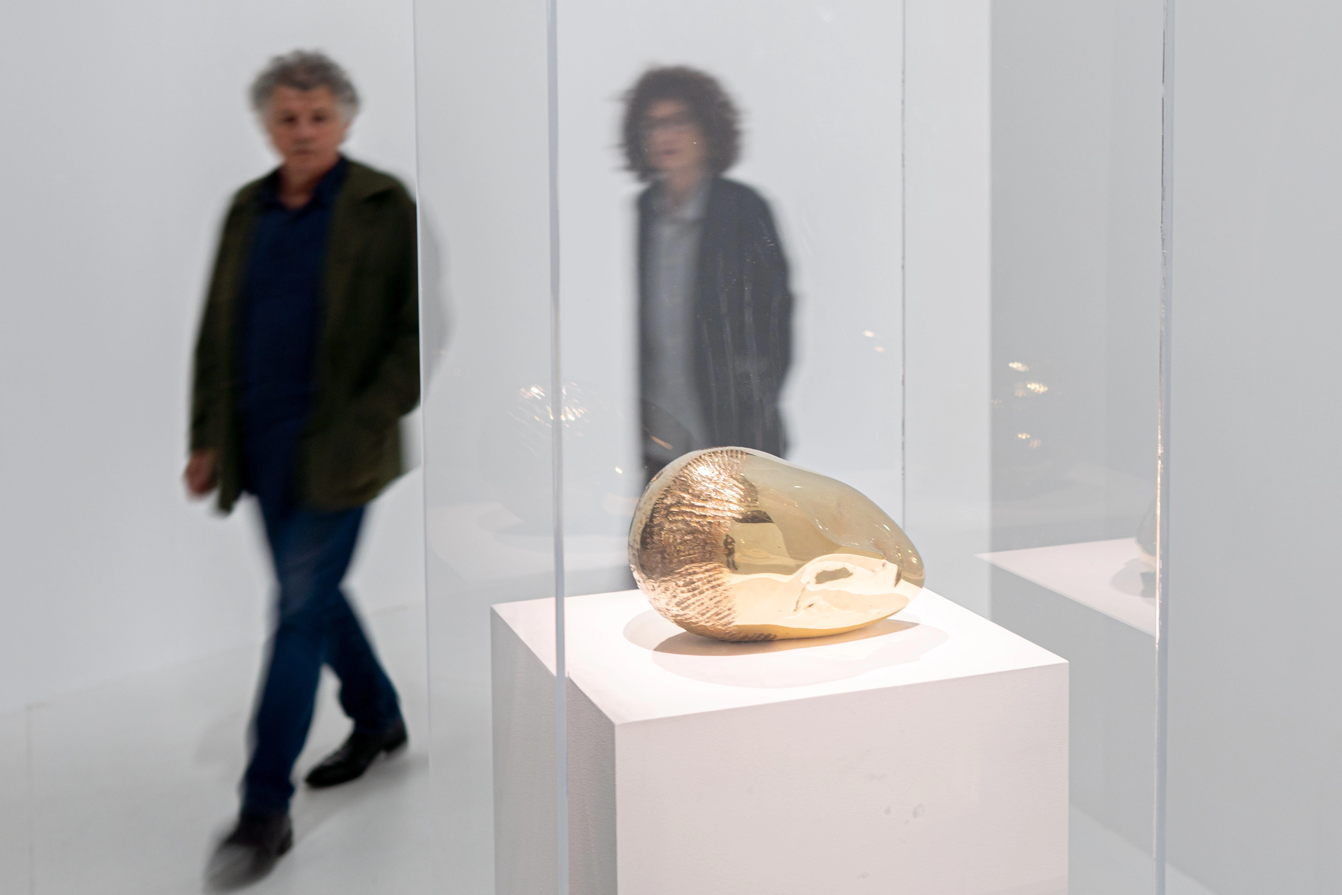 Am intrat de trei ori consecutiv la această expoziție și aș mai fi rămas. Pe fundalul sonor, recunosc în surdină pianul lui Erik Satie și pornesc prin labirintul care-i conduce pe vizitatori prin viața sculptorului, trecând de la încăperi scufundate în întuneric la lumina absolută a zborului. Prima sală este învăluită în alb și expune seria de sculpturi „Cocoșul”: patru lucrări de dimensiuni diferite care simbolizează sunetul crescendo produs de cântecul păsării. Următoarea sală găzduiește „Muza adormită”, iar în sala următoare, pentru a vedea „Ruga”, vizitatorii se apleacă involuntar atât în fața sculpturii, cât și în fața porții din lemn care a fost oferită de România Franței acum aproape un secol.