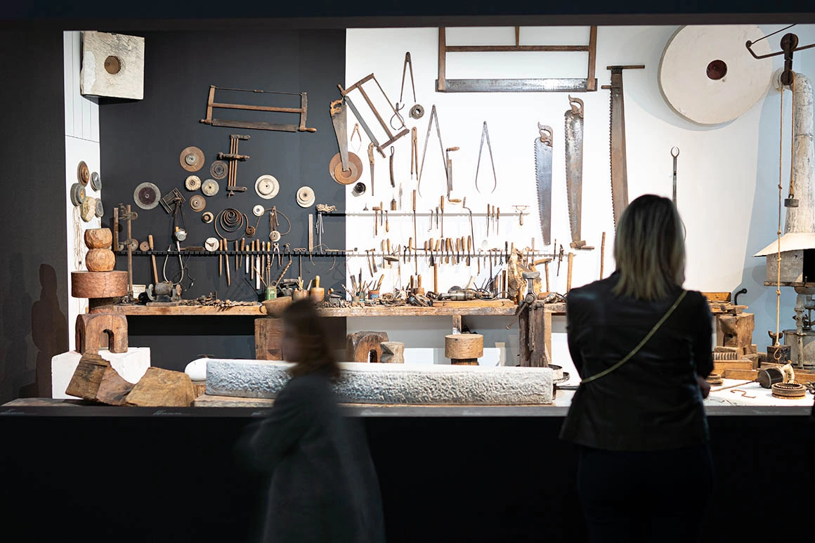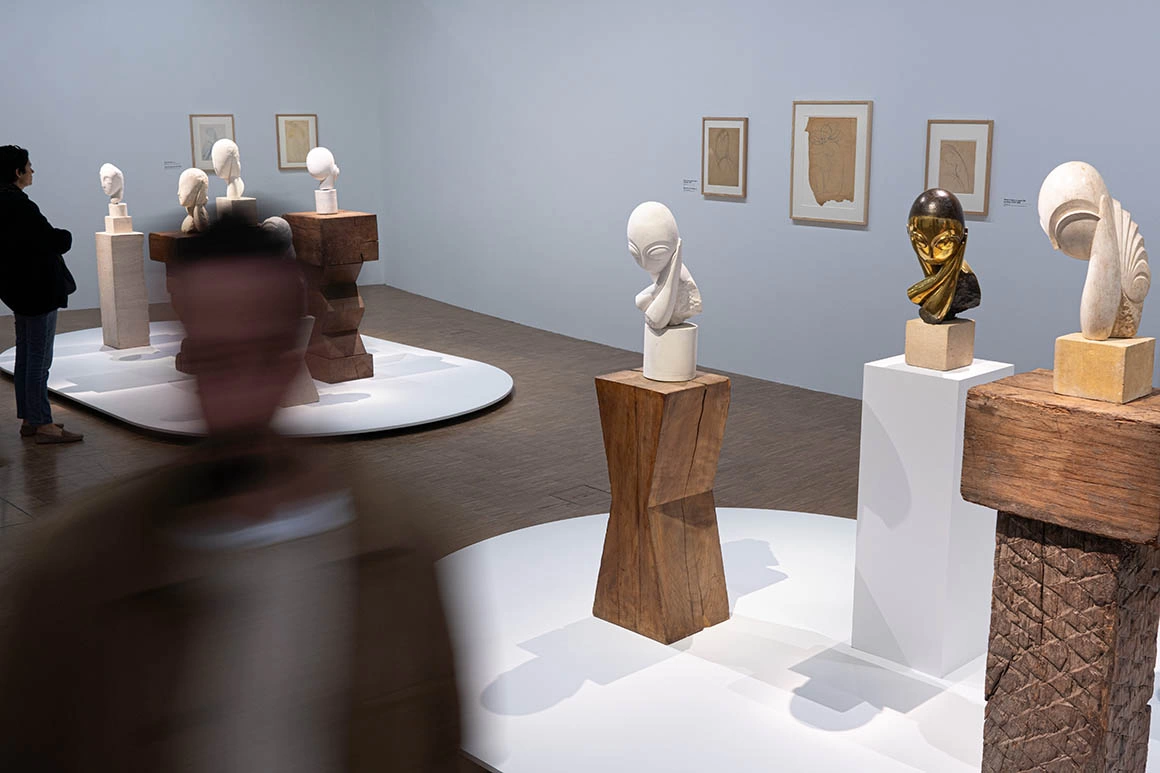 Următoarele încăperi sunt gândite ca niște capitole. Primul e o invitație în atelierul și în arhiva lui Brâncuși: pe lângă uneltele de lucru, puteți vedea o parte din cele peste 10.000 de documente ale artistului (scrisori, cărți, înregistrări etc.). În sala următoare sunt lucrări sub titlul „Feminin și masculin”. Brâncuși era preocupat de anularea detaliilor care definesc genul, iar căutările lui se opresc cu celebra sculptură „Prințesa X”, care în urmă cu un secol, când a fost expusă la Salonul Independenților, a stârnit discuții aprinse: reprezintă ea o femeie sau un falus?