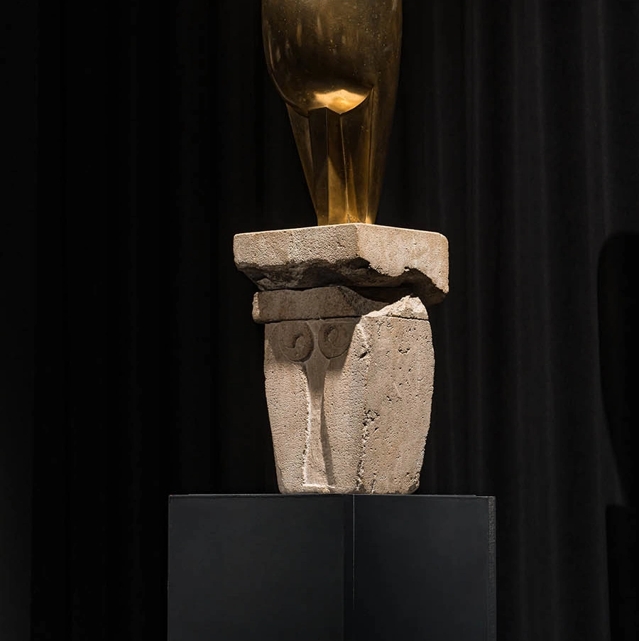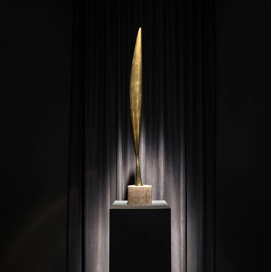 Imaginea principală: Vedere din expoziția „Brâncuși. Surse românești și perspective universale”. În centrul imaginii se află lucrarea „Pasărea în zbor”. Foto: Cătălin Georgescu