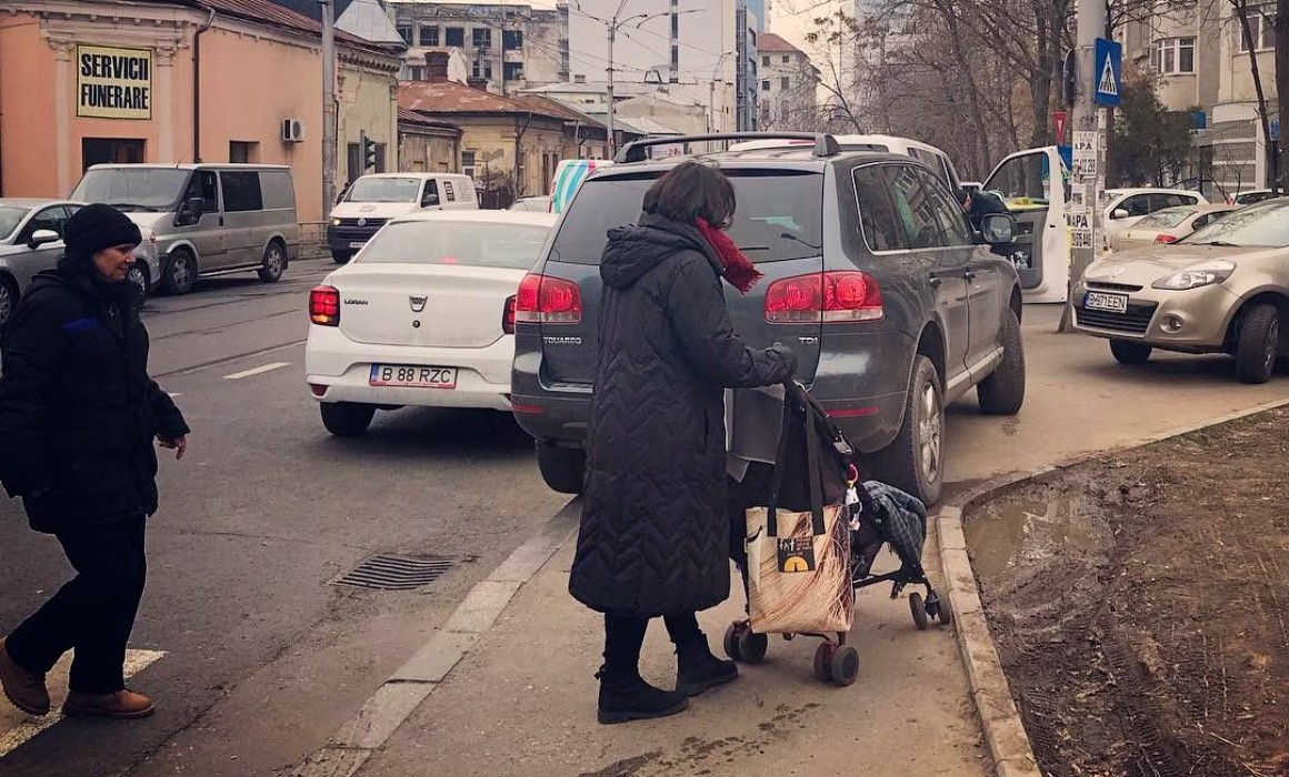 Să exemplific: Merg cu fiica mea în parc. O plimbare de 5 minute se transformă într-un traseu cu obstacole care ne ia cam 20 de minute. Cu un cărucior și un copil (aproximativ 15 kilograme în total) fac echilibristică pe treapta de la ieșirea din bloc, apoi salturi peste zeci de borduri înalte și slalom printre mașini parcate pe trotuar sau pe trecerea de pietoni. Ocolim porțiuni de trotuar blocate de gunoi. În fața Institutului de Statistică, a Ministerului Finanțelor și a Ministerului Dezvoltării, Lucrărilor Publice și Administrației e plin de mașini cu motoarele pornite (și șoferi care așteaptă pe cine o fi înăuntru și-și permite șofer). Zilnic trec printre mașini pornite, care stau în cozi interminabile de mașini pornite, care fumegă și radiază căldură. Până acum un an credeam că vin în forță mașinile electrice și hibrid, dar de pe stradă nu pare așa. În aceeași plimbare mă lovesc de faptul că nu pot intra în majoritatea magazinelor pentru că au trepte, dar nu și rampă. Alternativ, pot căra cele 15 kg în sus și jos. Ceea ce mai fac pentru o cafea bună sau o expoziție, dar astea sunt excepțiile pentru zilele când am mai multă energie. În teorie, toate magazinele cu intrare la parter ar trebui să aibă rampă de acces, însă în realitate doar foarte puține aplică legea.