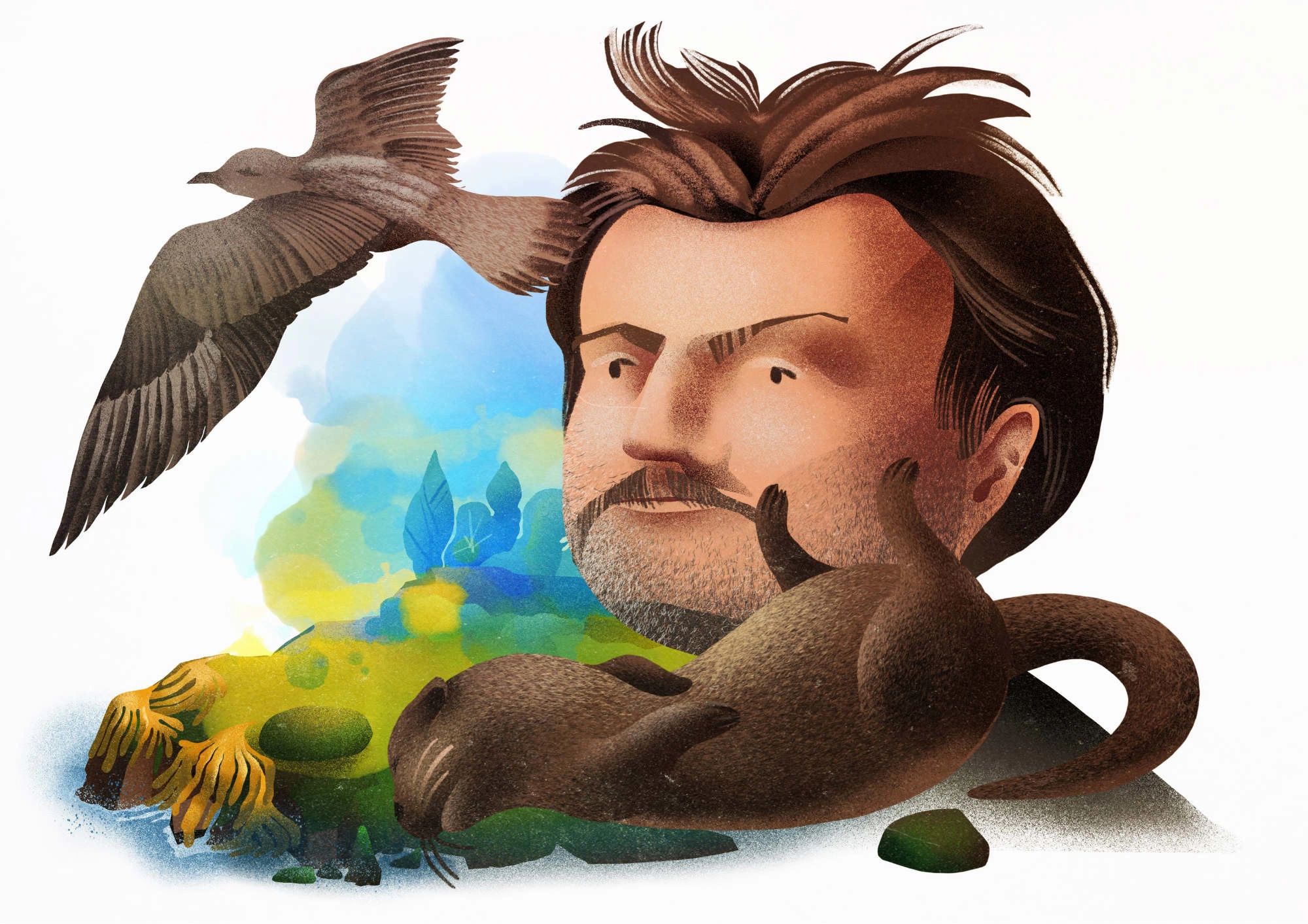 Pe cadavrul unei foci pe care am omorît-o se așază un pseudo-albatros: zburase multă vreme în jurul cadavrului, pe care în cele din urmă se pune, cu aripile întinse, pentru a fi la adăpost de cea mai mică amenințare. Taie slănina cu vîrful ciocului, trage de maâ, se umple de sînge și grăsime. Liniștit, își închide aripile. Sosește un altul, zboară primprejur un timp, în vreme ce primul scoate un fel de mîrîieli, ca un cîine în aceeași situație: „hmr, hmr, hmr”. Atunci, cele două animale își desfac coada, deschis aripile, își spun prostii: „hmr, hmr, hmr”, apoi, avînd destul loc, se pun pe mîncat împreună. Un pinguin sare din apă; spaimă: [pseudo-albatroșii] se aruncă unul la celălalt, apucîndu-se cu ciocurile, trăgînd în toate direcțiile, țipînd. Iată-i deodată într-o baltă, continuă să se hărțuiască, făcînd apa să țîșnească în toate părțile. În cele din urmă, unul se declară învins, se îndepărtează o clipă și prînzul continuă. După o oră, erau 12 pe cadavru sau aproape.