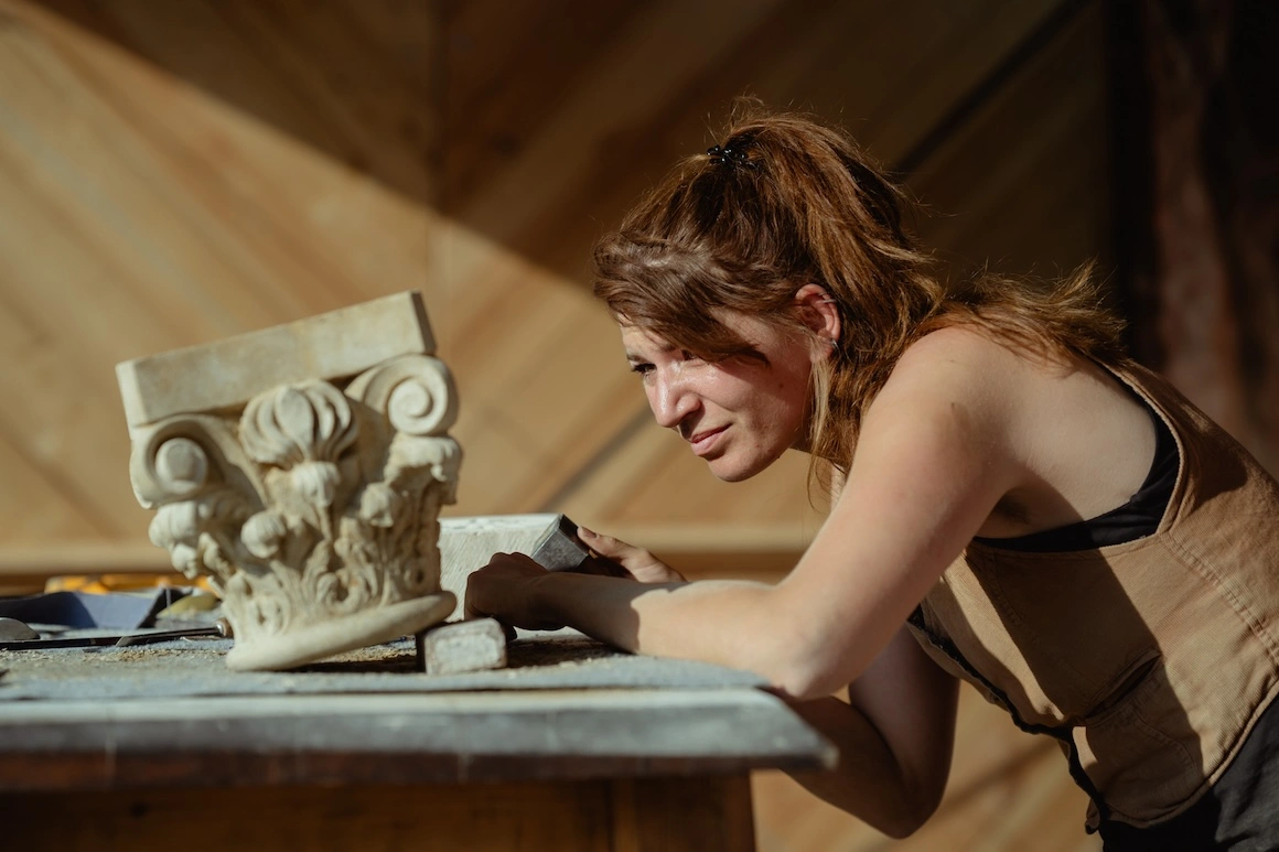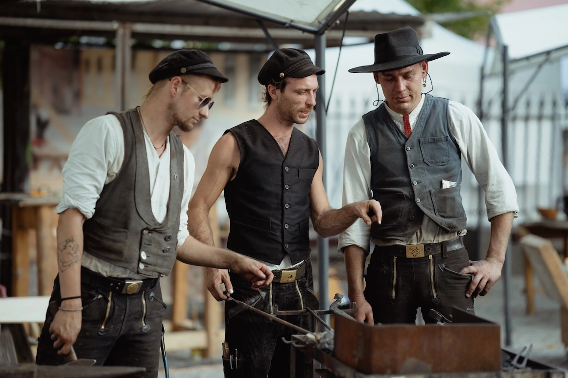 Într-o piațetă din centrul Sibiului, Finn modelează o bucată de fier proaspăt scoasă din forjă. Are vreo 20 de ani, poartă pantaloni evazați negri și cămașă albă cu mânecile suflecate, are un cercel în ureche și creastă punk de păr roșcat ascunsă sub un basc negru. În câteva minute, bucata de fier devine în mâinile lui un trandafir care va fi folosit ca decorațiune într-o biserică. Finn nu-i bagă-n seamă pe turiștii și localnicii care-i fac poze. Se concentrează să-i iasă petalele cum trebuie. La câțiva metri de el, Matilde sculptează cu atenție capitelul unei coloane. Lovește în piatră scurt și precis, cu o expresie calmă. Are 30 ani, tatuaje, poartă o vestă nisipie.