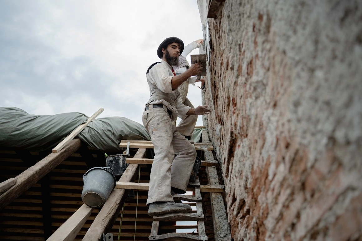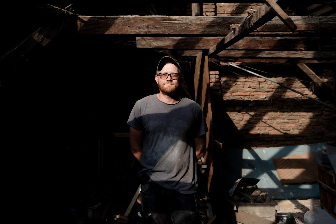 Pe o stradă alăturată, în curtea unei clădiri de pe la 1900, Ben își dă jos pălăria, ia o doză de bere și se așează la o masă alături de alți tineri. Are 28 de ani și e îmbrăcat la fel ca mai toți bărbații de lângă el. Un tânăr suit pe acoperiș aranjează șindrila, iar altul tencuiește un perete. Aș crede că am aterizat în cu totul alt timp, dacă pe fundal nu s-ar auzi rap german.