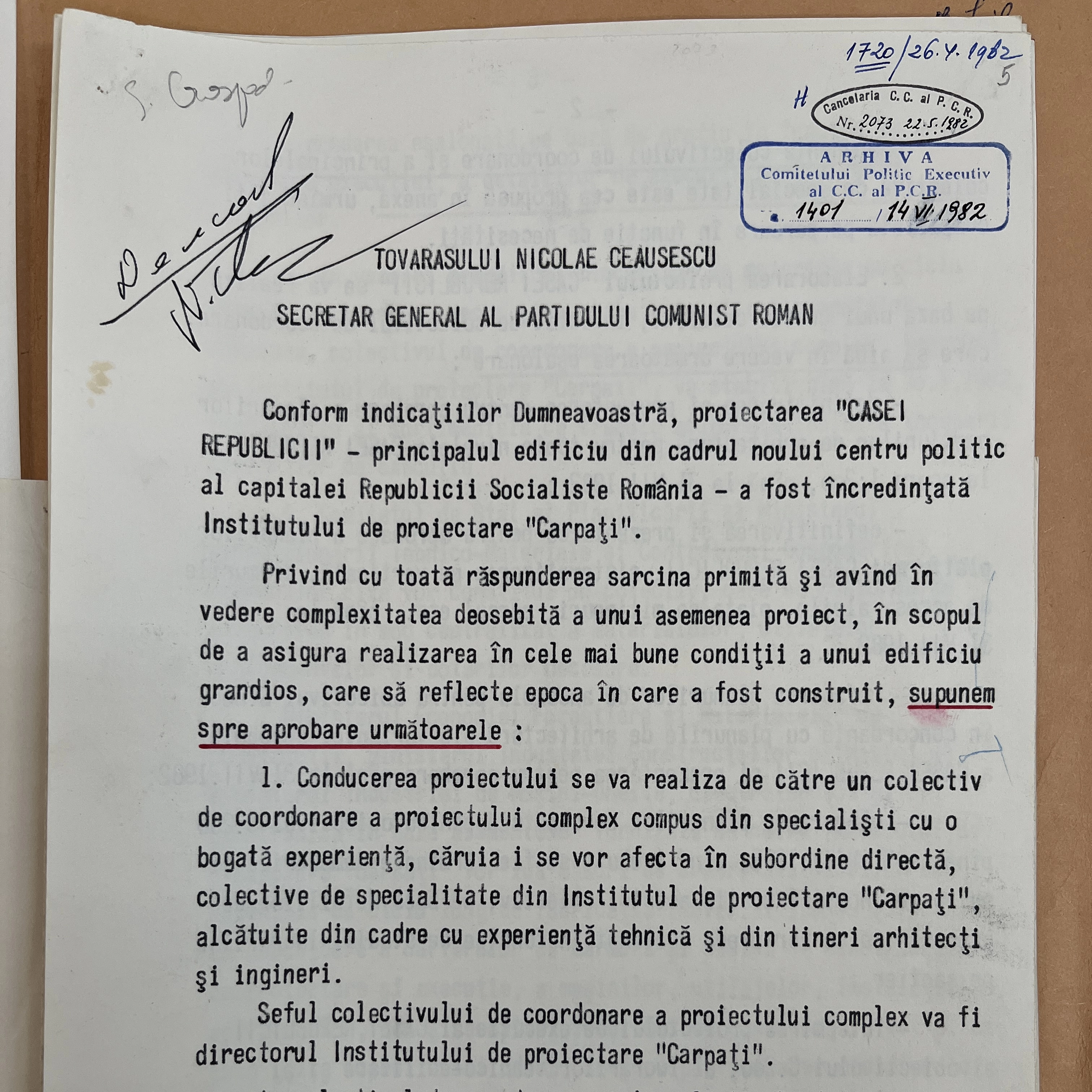 Odată ajunsă în zilele noastre, am vrut să înțeleg cum ne raportăm și noi, ca societate, la moștenirea pe care ne-au lăsat-o regimul Ceaușescu și arhitecta șefă a proiectului Palatului Parlamentului. În ea se amestecă traumele demolărilor, apariția unui non-loc în centrul orașului, dar și întrebarea care încă nu și-a găsit un răspuns complet: „ce facem cu Casa Poporului”?