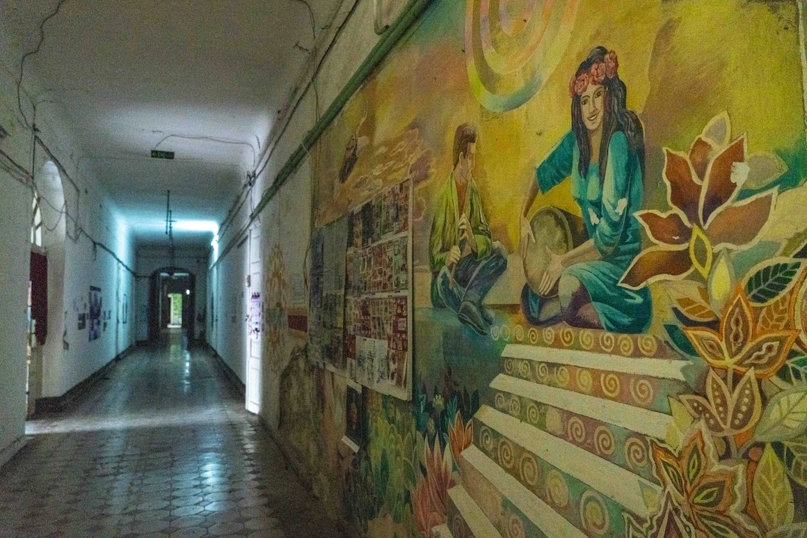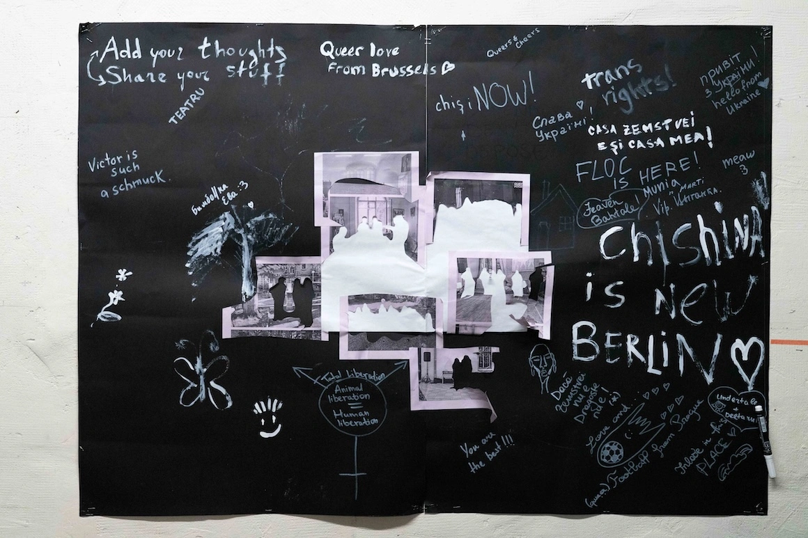 Printre crăpăturile din tencuiala de pe pereții Casei Zemstvei, din centrul capitalei Republicii Moldova, se văd desene, mesaje și, din loc în loc, decoruri pentru tot felul de evenimente culturale. Zidurile scorojite au devenit suport pentru fotografii, manifeste improvizate și instalații artistice. În această clădire precară, unde iarna se face teribil de frig, există și „multe spații închise cu tavane prăbușite”, îmi spune administratorul Eugeniu, care deschide rând pe rând camerele folosite și folosibile ale Casei. Cu toatea acestea, arta contemporană pare să apară organic aici, ca o formă de rezistență și expresie personală, care transformă ruina într-un loc viu. Fragilitatea monumentului, ferestrele lui vechi din lemn, lămpile de epocă, mobilierul improvizat – toate par să servească drept resursă artistică.