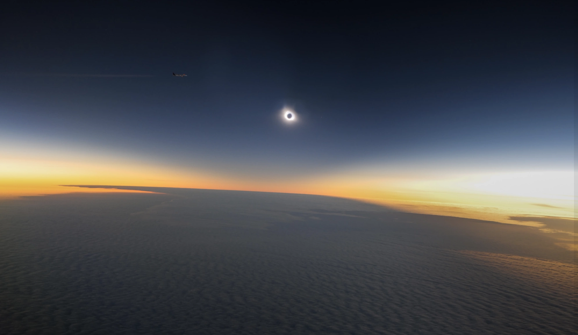 Eu am simțit că a trecut timpul fulgerător. Nu mi s-a mai întâmplat. Practic n-am avut timp să mă uit la eclipsă ca lumea, dar probabil și că așteptările și stresul foarte mare că n-o să zburăm au făcut ca lucrurile să capete un dramatism și mi s-a părut că a durat doar câteva secunde. Ba chiar m-am dus să verific dacă s-a greșit ceva. Xavier Jubier, astronomul francez care a coordonat expediția din celălalt avion, a reușit o intercepție aproape perfectă, eclipsa a durat 1,53 minute și trebuia să fie 1,54, o diferență care nici nu contează. De la sol, s-a văzut 1,32 minute. Fiind în aer, la viteza de vreo 900-950 km pe oră, avionul reușește să țină puțin pasul cu umbra.