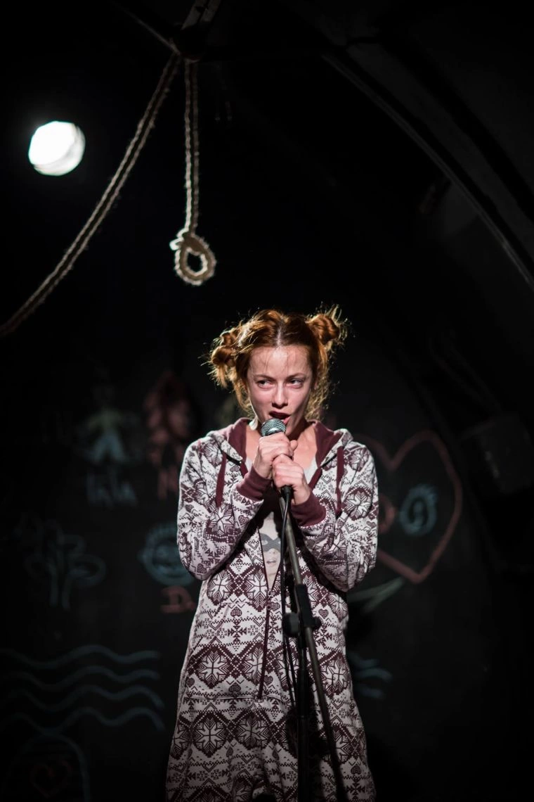 Once Upon se folosește de pretextul basmului pentru a crea o cu totul altă poveste și a vorbi despre un subiect pe care nu îl prea abordăm în public – depresia. Nu e un spectacol ușor de digerat, deși textul alternează cu melodii (se folosesc vreo zece instrumente muzicale, cu stiluri de cântat variind de la rap la canto), dar e o ocazie bună pentru introspecție. E, de fapt, reprezentarea unei generații ajunse la 30 de ani, peste care viața a intrat prea brutal. Se joacă și se cântă despre sărăcie, inadaptare, lipsa iubirii sau teama de a nu fi iubit, grija zilei de mâine și fricile care trăiesc în capul nostru. „E dark pentru că oamenii au și gânduri de astea de care fug. Sau pe care le ascund bine. Și poate e firesc să fie așa. Și am vrut să exploatez puțin zona asta, de cum sunt aliniate în capul unui om gândurile și dialogul lui cu el pe ceea ce a trăit până într-un anumit punct”, mi-a spus Daniel Chirilă, actor în trupă și unul dintre textierii principali ai pieselor jucate de ei.