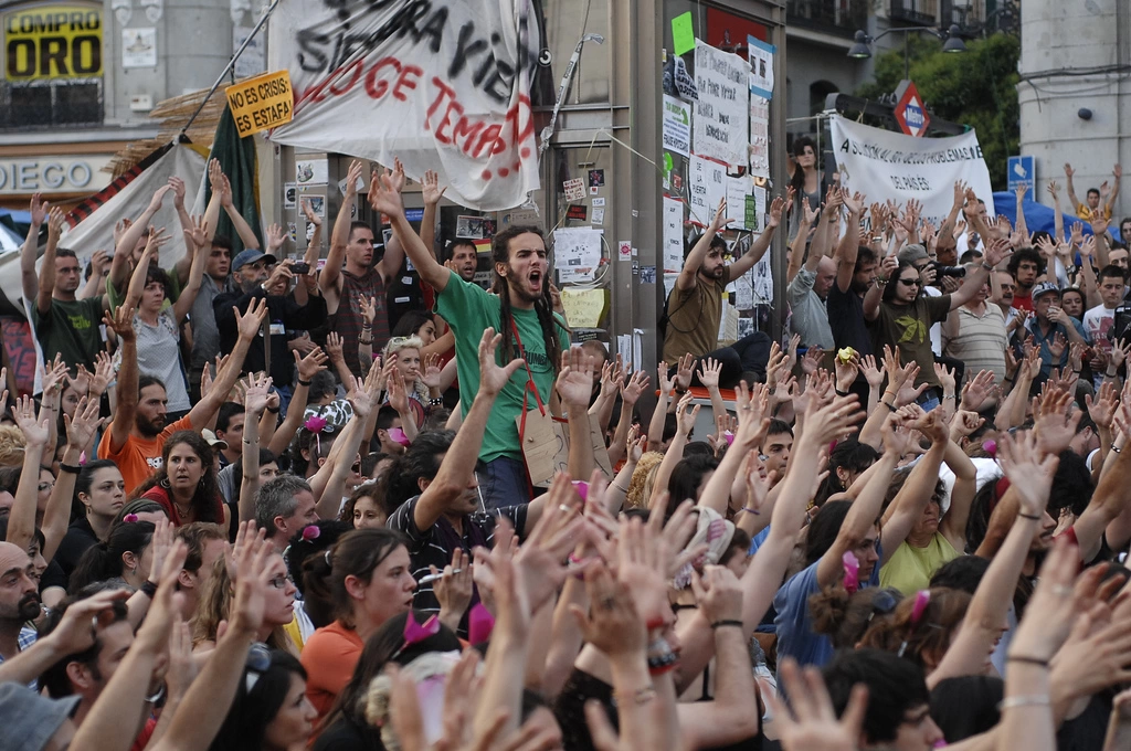 15 mai, 2011. Sute de mii de oameni s-au adunat în piaţa centrală din Madrid, Puerta del Sol, mobilizaţi de reţele sociale şi sms-uri, la un apel spontan lansat în cele mai urâte momente ale crizei economice care a izbucnit în 2008 şi care continuă şi acum. Motivul nu a fost atât de specific cum este acum în România. A fost un protest împotriva întregului sistem economic şi politic nedrept – care le-a permis politicienilor să se afunde sistematic în corupţie – şi a influenţei uriaşe pe care o au băncile şi marile corporaţii asupra deciziilor guvernului şi ale parlamentului.