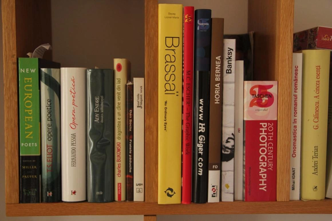 Biblioteca mea e scindată. O parte dintre cărţi sunt la Bucureşti, restul la Braşov. Dacă ar fi să fac o diagramă circulară, ea ar arăta destul de pestriţ. Din ea fac parte cărţi moştenite de la bunici, cum ar fi Istoria Lumii, editată de Tolnai la sfârşitul anilor 1920, începutul anilor 1930, cărţile primite sau preluate din rafturile părinţilor, cum ar fi cele din colecţia Romanul secolului XX etc. Ca fapt divers: la un moment dat, într-o vacanţă, tatăl meu mi-a spus că ar fi fain să fac o bază de date cu toate cărţile pe care le aveam în casă. Am muncit cam o lună la asta. Nu mai ţin minte dacă am dus proiectul la bun sfârşit, nici numărul exact de cărţi la care ajunsesem, oricum cred că în jur de trei mii. Apoi, în corpul nou de bibliotecă sunt primele cărţi cumpărate de mine, albume de artă, antologii de poezie, romane. În Bucureşti, în cei şapte ani de când stau în aceeaşi chirie, am reuşit să umplu toate rafturile disponibile. Prin 2009 mi-am pus prietena să cumpere de la Gaudeamus (eu nu am reuşit să ajung) toate cărţile de poezie ale poeţilor de care auzisem şi care mi se păreau valoroşi. Sunt zeci de cărţi pe care le-am cărat de la Bucureşti la Braşov cu trenul. Cele mai valoroase, pentru că nu mă pot opri la una singură, sunt antologiile de poezie americană pe care le-am cumpărat după ce am încheiat cele trei luni şi jumătate de muncă în Statele Unite prin programul work and travel şi am plecat la New York pentru a-mi petrece acolo ultimele două săptămâni de şedere legală. În curând, sper ca cele două părţi ale bibliotecii mele să se reunească la Braşov.